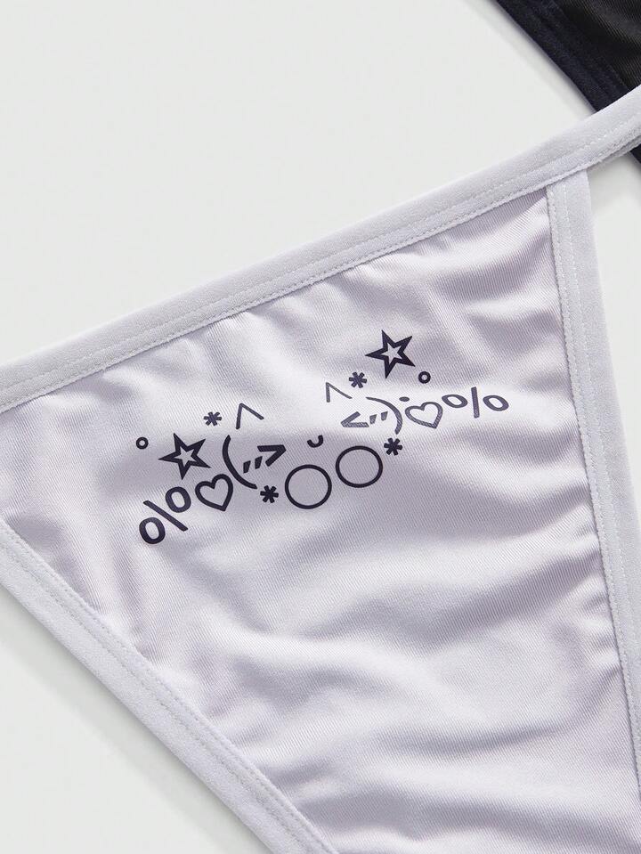 Kawaii 3pcs Cute Cartoon Face Expression Lace Bow Thong Panties