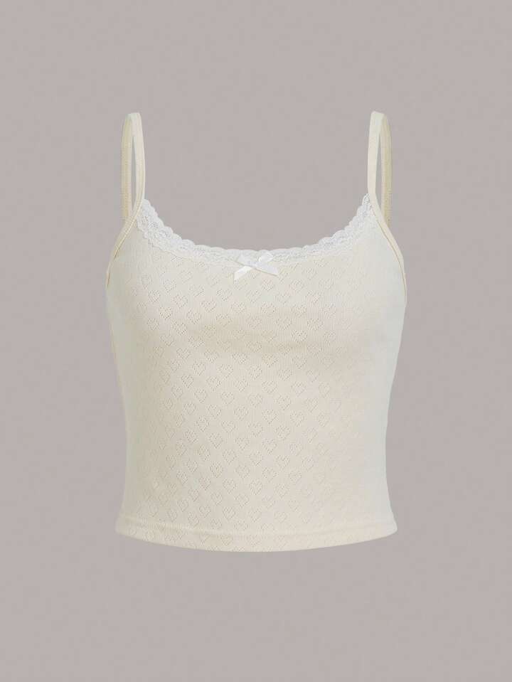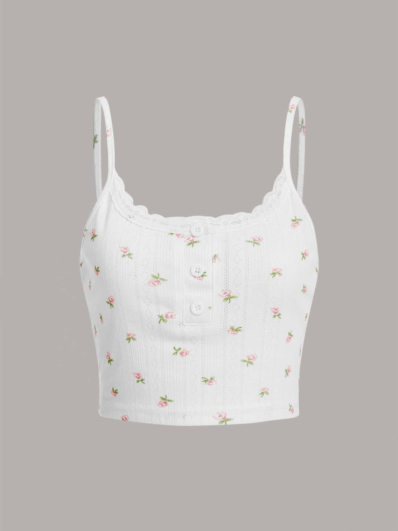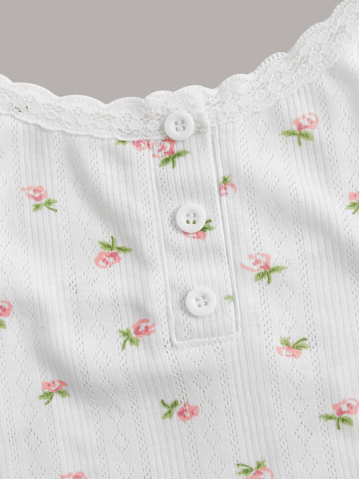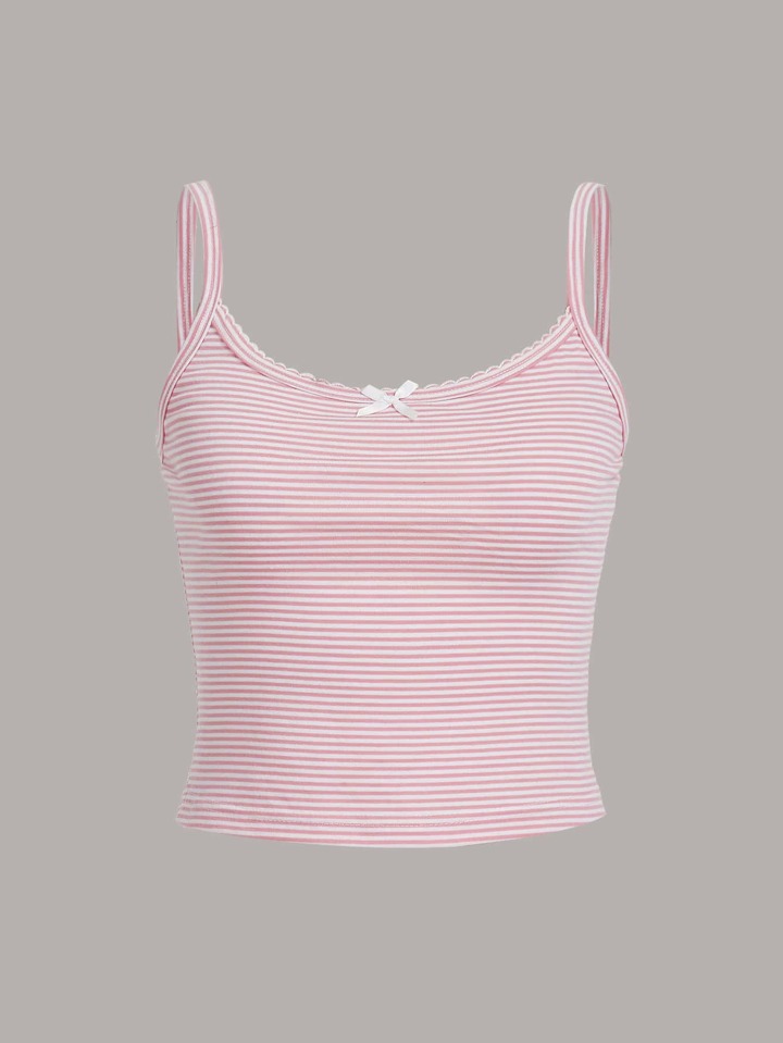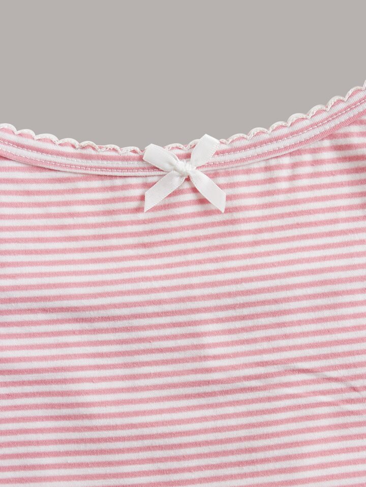 Kawaii 3pcs Ditsy Floral Striped Print Contrast Lace Cami Top