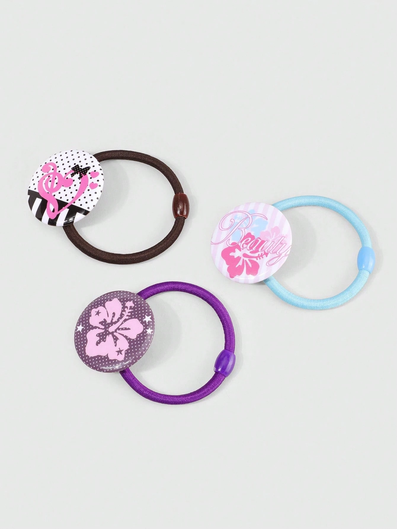 Kawaii 3pcs Musical Note & Flower Decor Hair Scrunchies