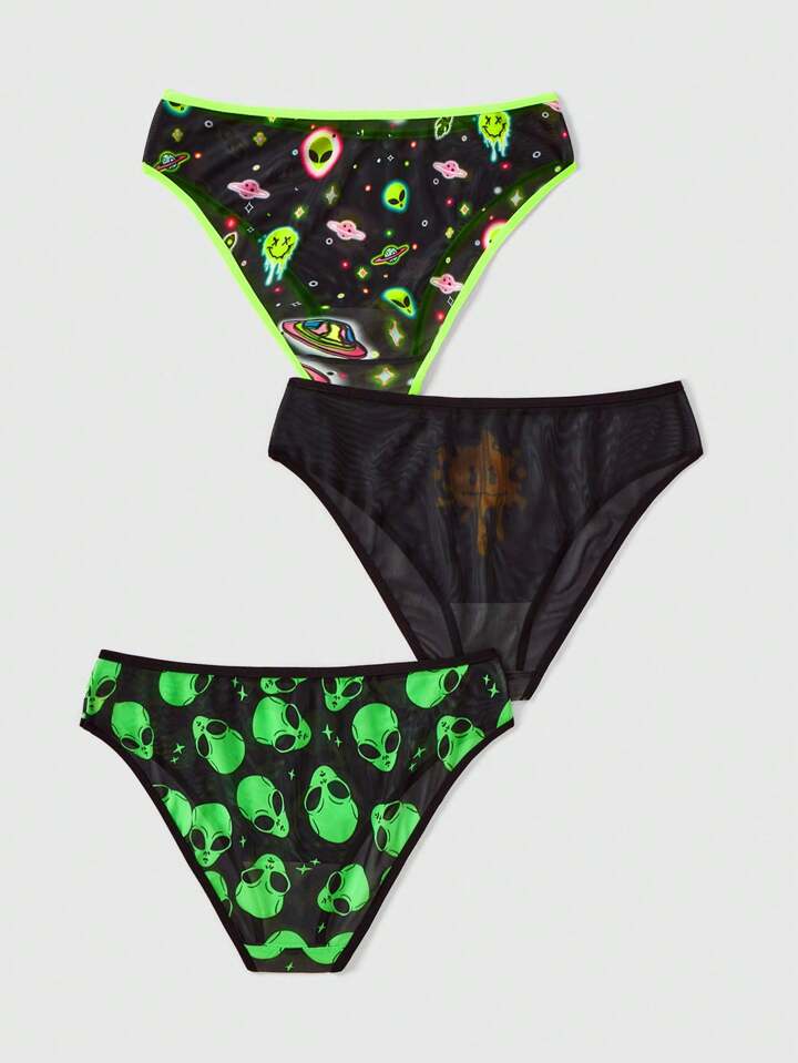 Kawaii 3pcs/Set Alien Digital Printed Color-Block Triangle Boxer Briefs