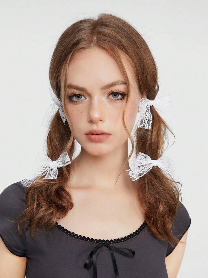 Kawaii 4pcs Ballet Style Lovely Lolita Lace Bow Hair Clips, Versatile And Ethereal