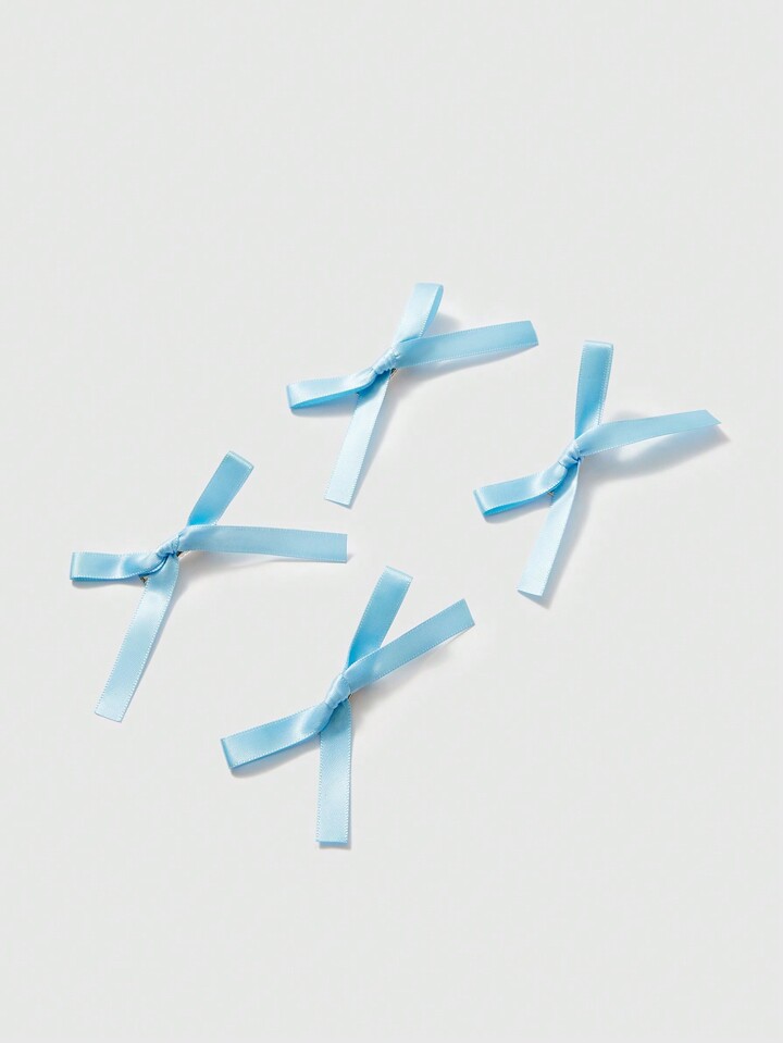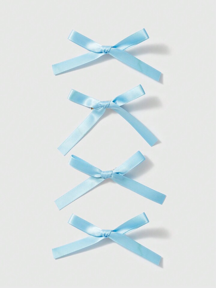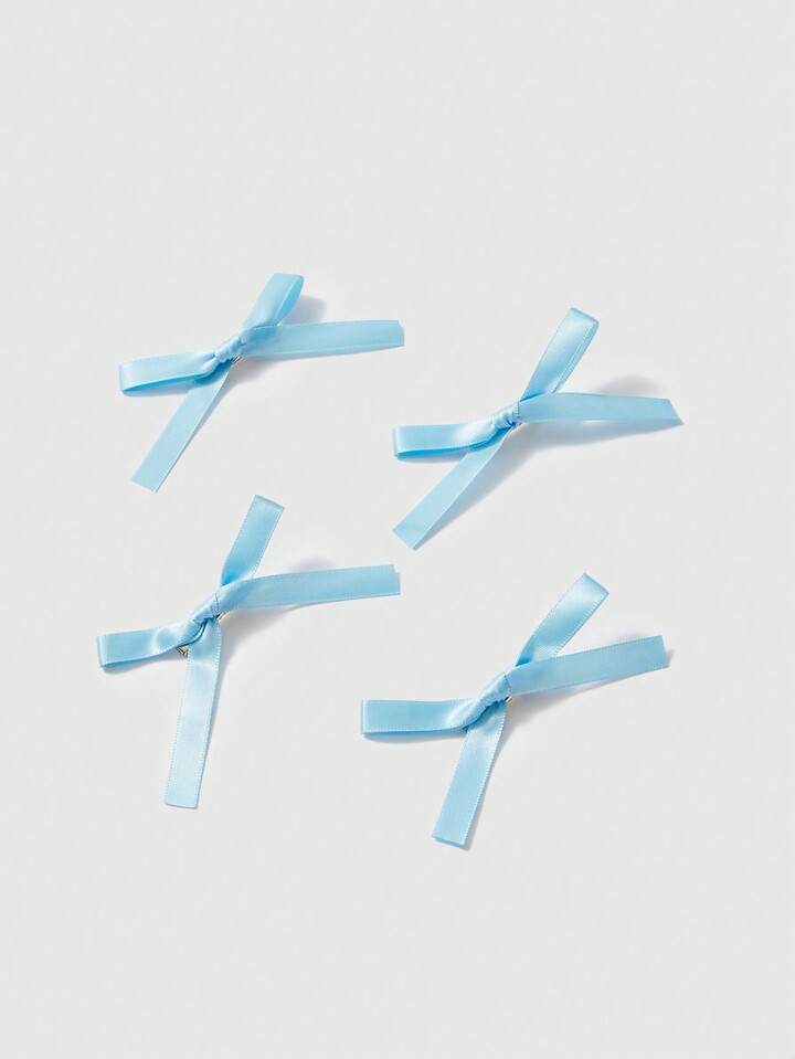 Kawaii 4pcs Blue Ribbon Bow Hair Clips, Fashionable Sweet Princess Style Hair Accessories, Daily Casual & Ballet Inspired Decorations