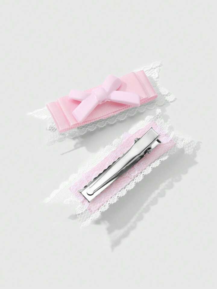 Kawaii 4pcs Cute Handmade Beaded Pearl Netting Bow Heart Star Charms For Phone Case, Keychain, Bag - With 2pcs Pink Lace Bow Hair Clips, Gift Set For Women And Girls