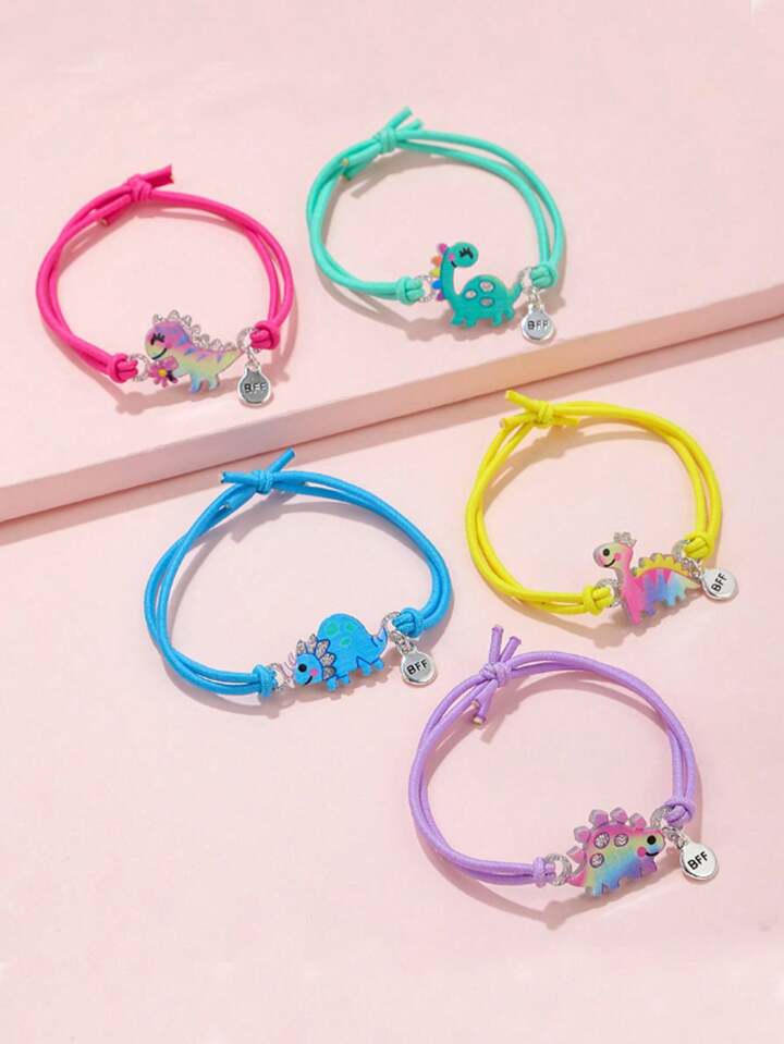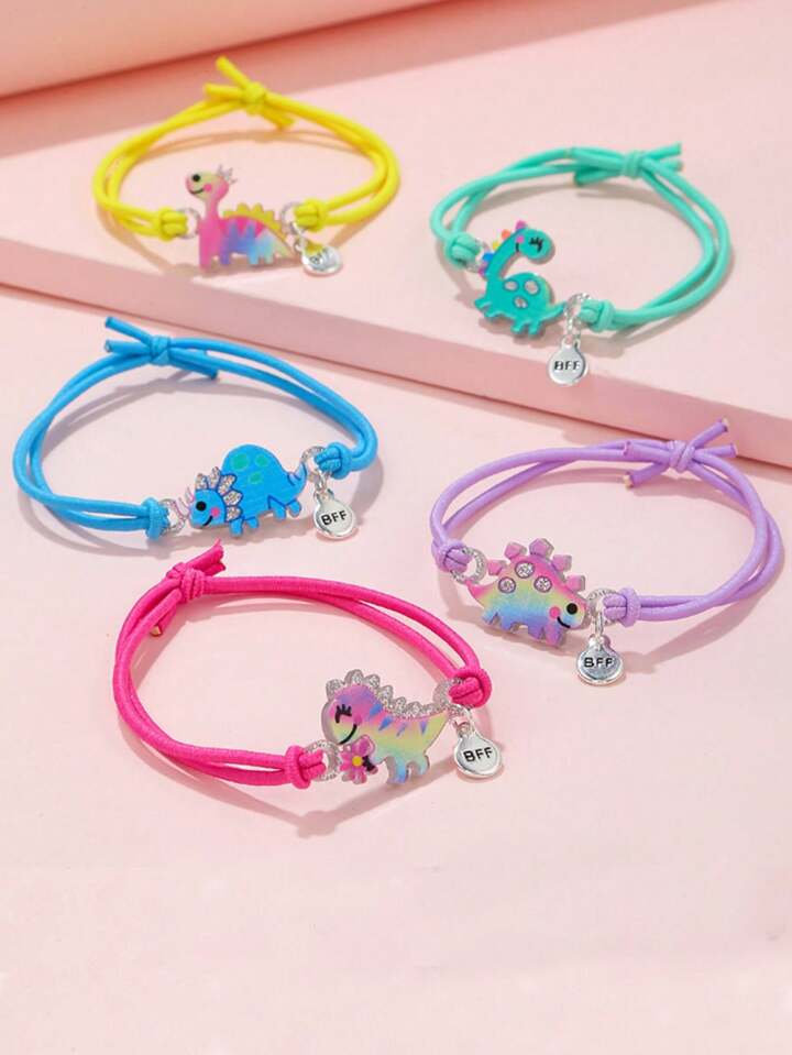 Kawaii 5pcs Creative Cute Cartoon Dinosaur Bff Friendship Bracelets, Decor Accessories, Great Holiday Party Gifts For Girls' Best Friends