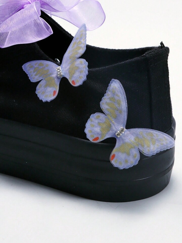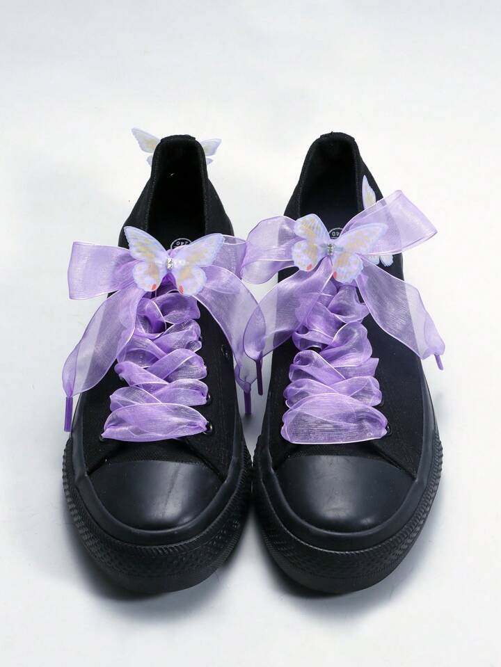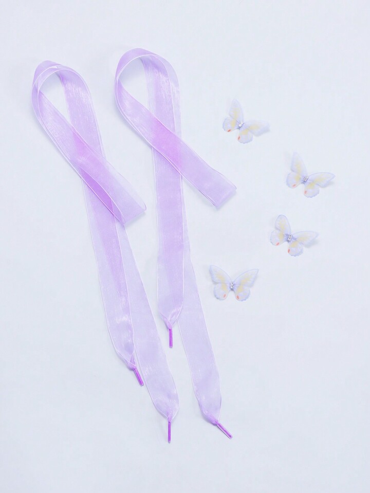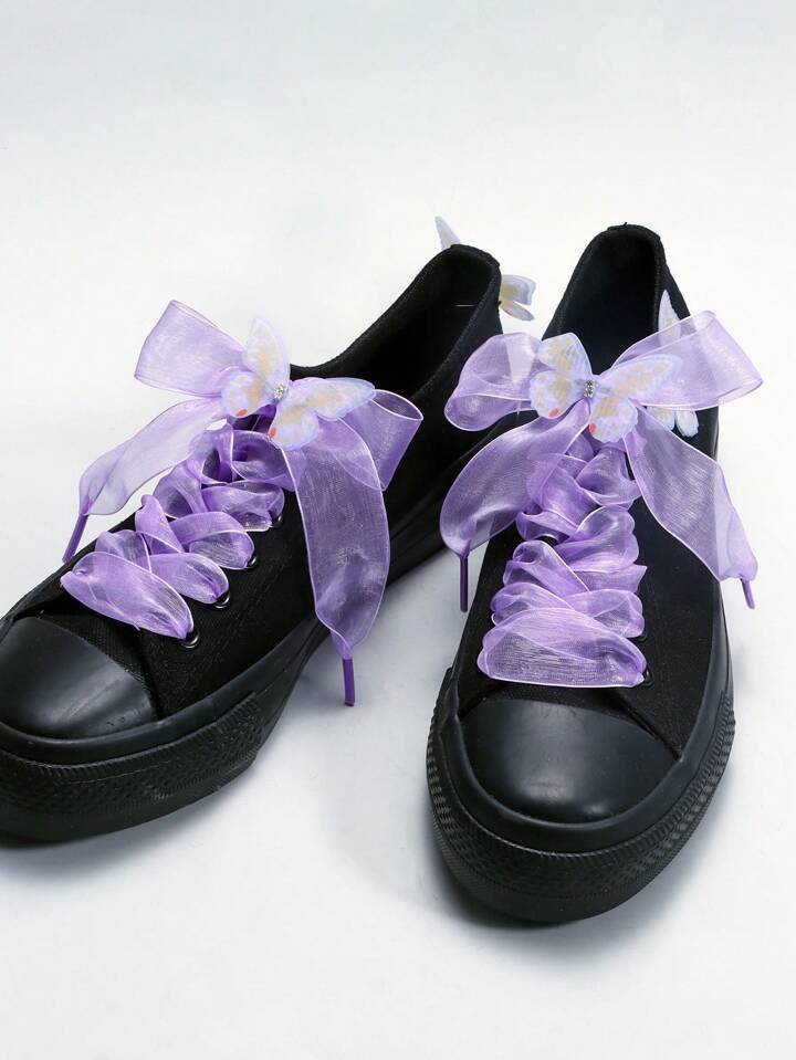 Kawaii 6pcs Purple Organza Shoe Laces Butterfly Shoelaces For DIY Decoration