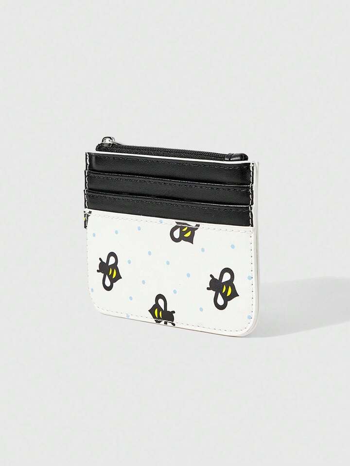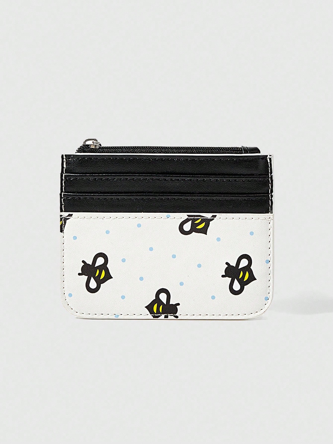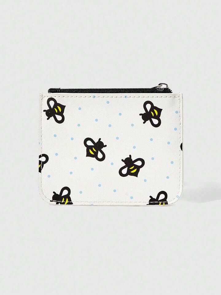Kawaii All-Over Bee & Polka Dot Pattern Card Holder & Coin Purse