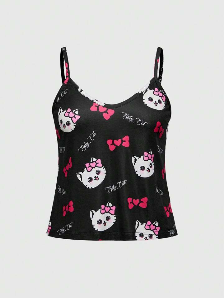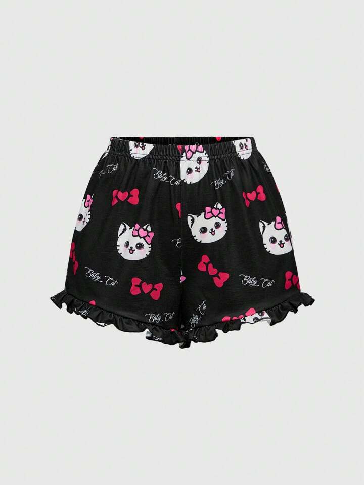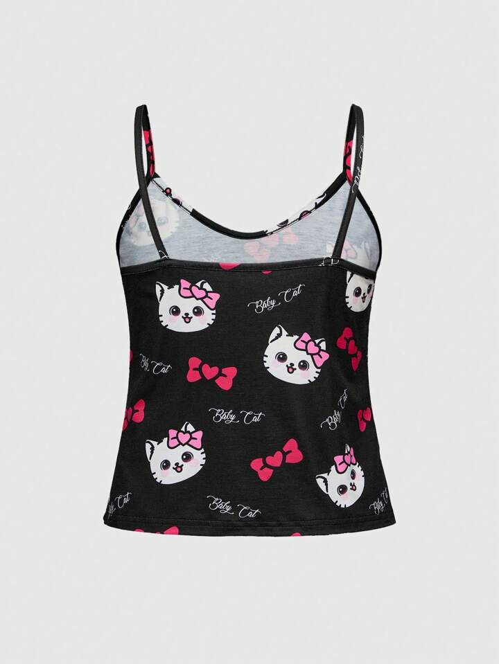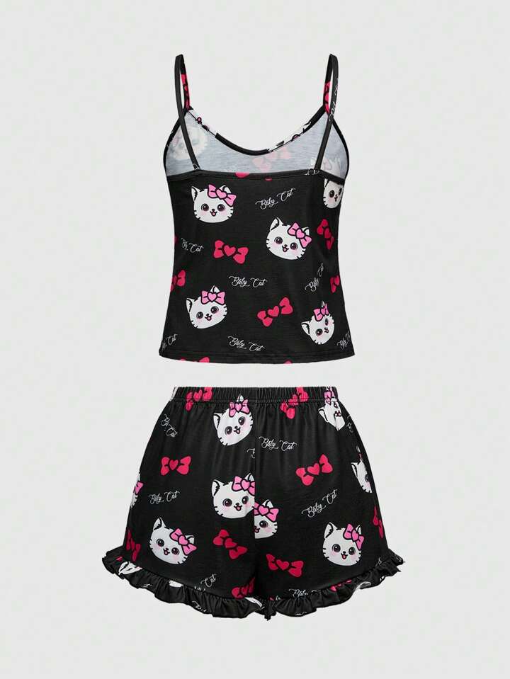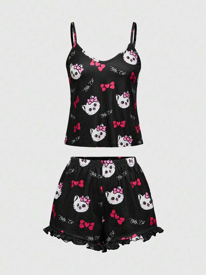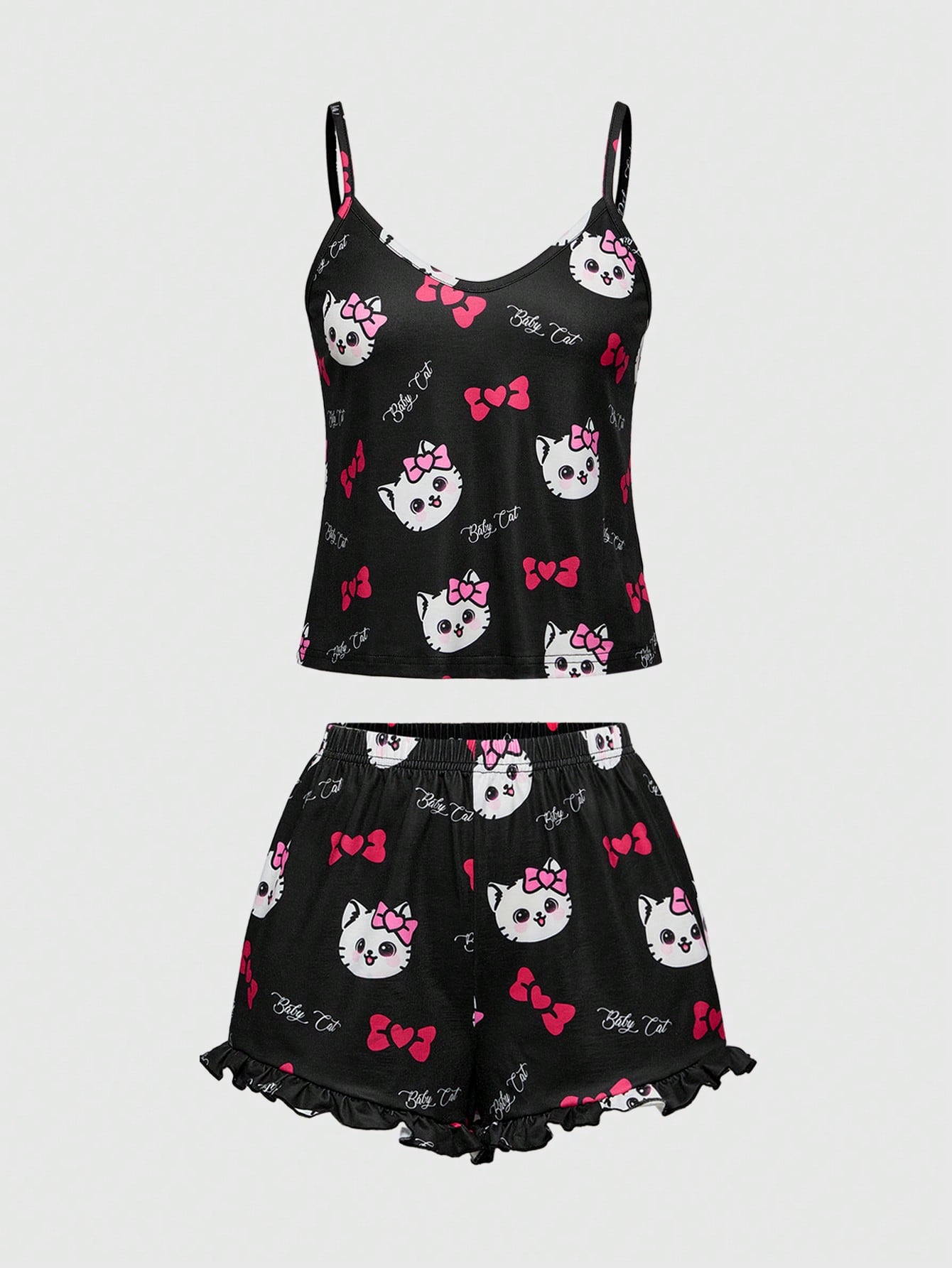 Kawaii Baby Cat Bowknot Casual Women's Pajama Set