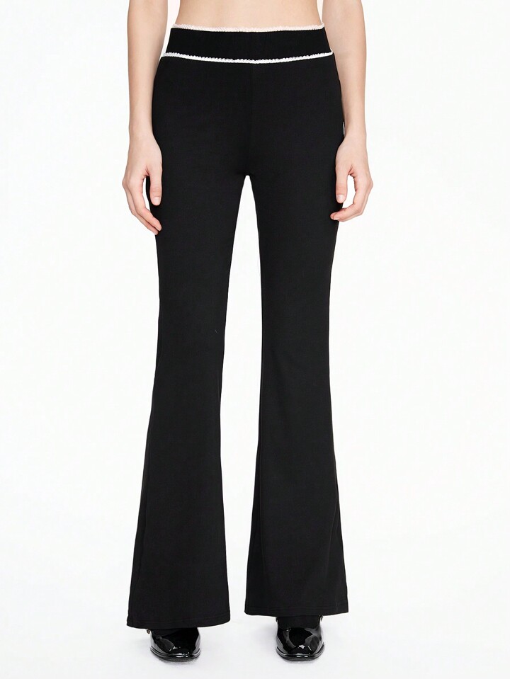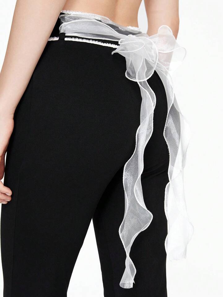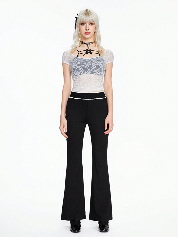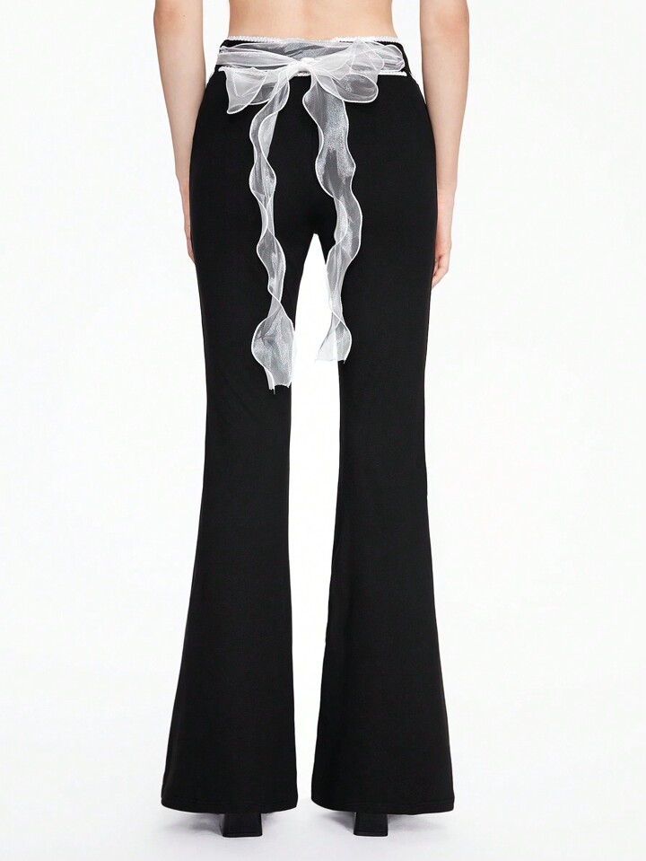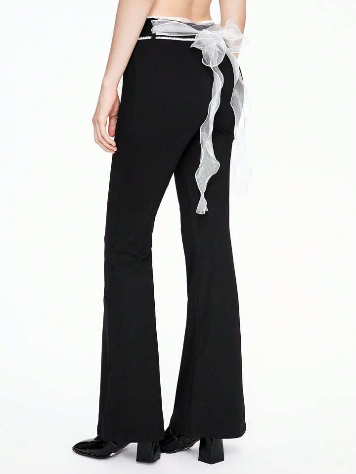 Kawaii Bowknot Ribbon Decor Sexy Low Waist Skinny Flare Pants For Women