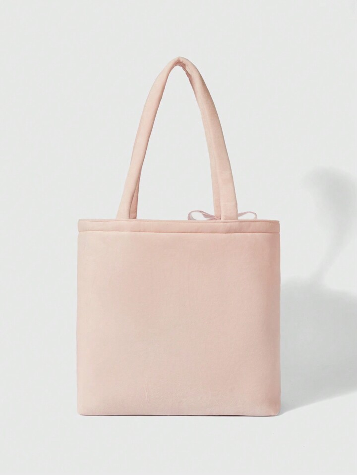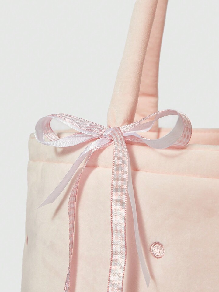 Kawaii Cartoon Fashion Large Capacity Bow Pattern Durable Portable Plush Tote Bag For Women