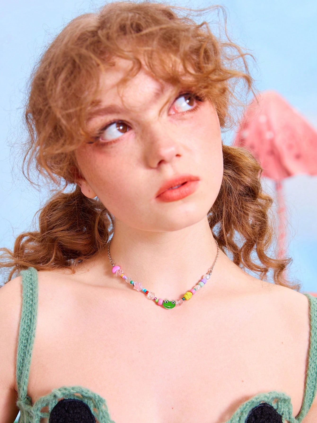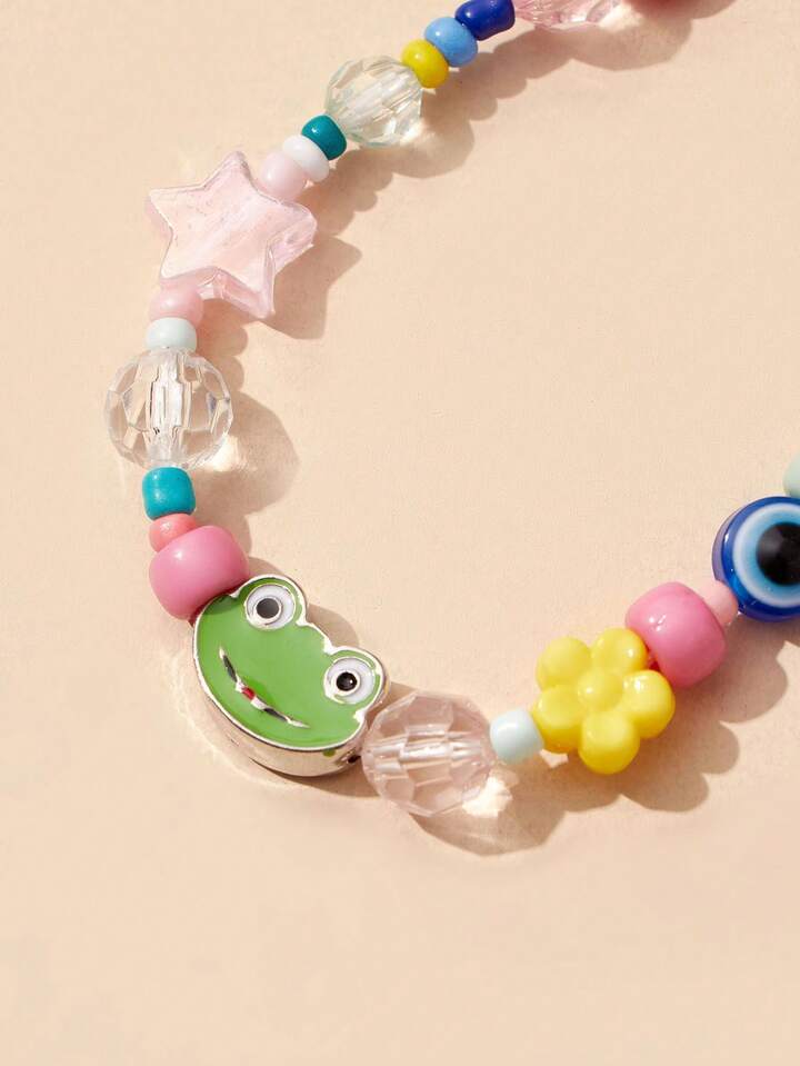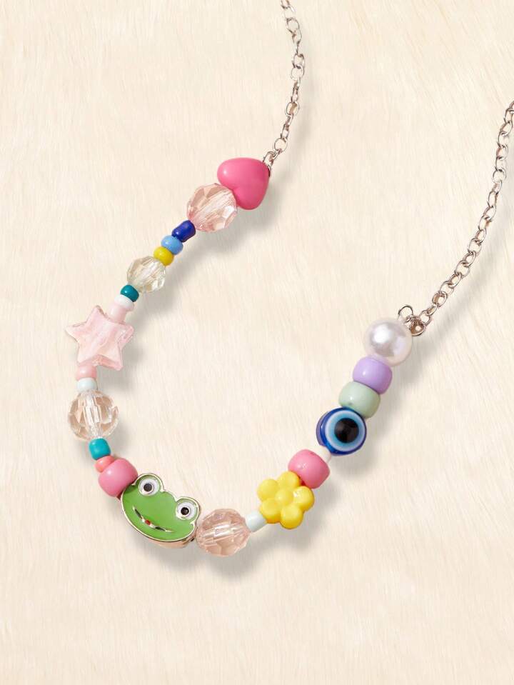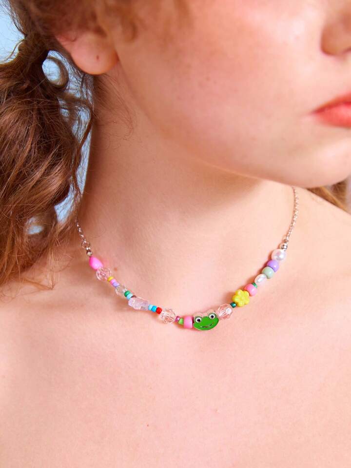 Kawaii Cartoon Frog & Heart Decor Beaded Necklace