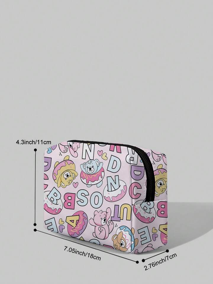 Kawaii Cartoon Print Cosmetic Bag, Flower Style: 337780