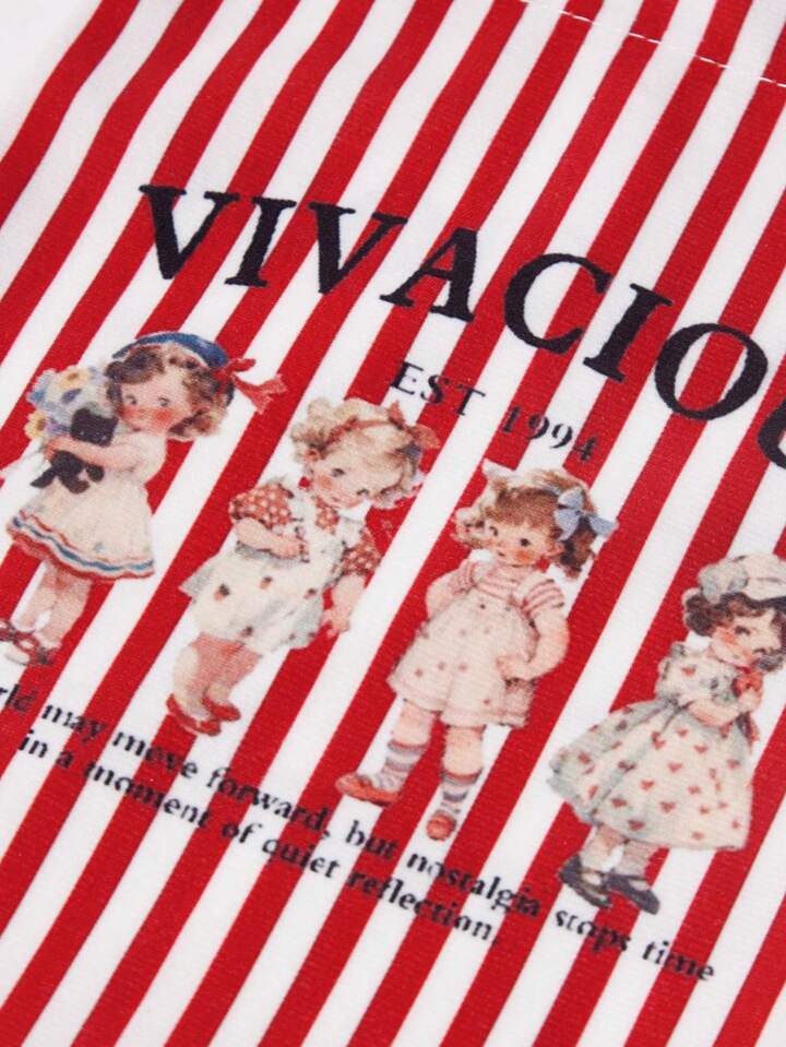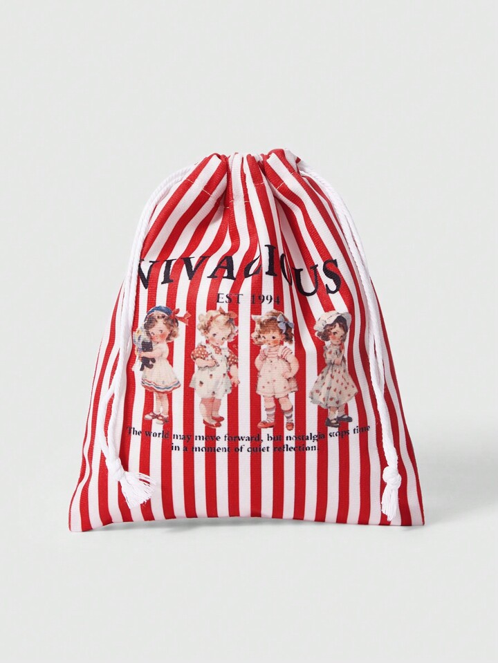 Kawaii Cartoon Retro Girl Design Large Capacity Drawstring Makeup Bag Cosmetic Pouch