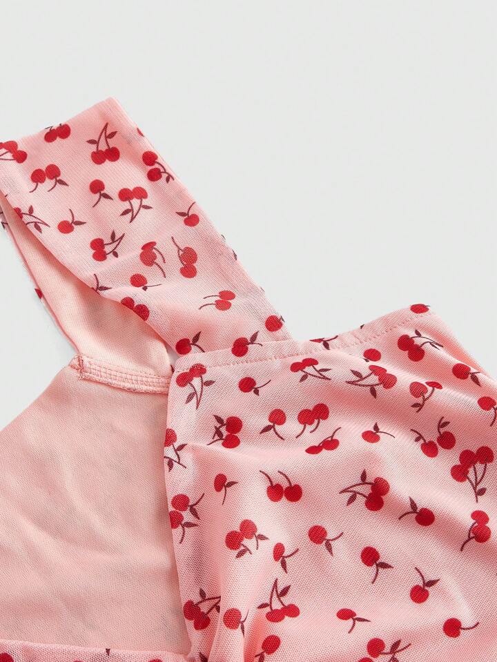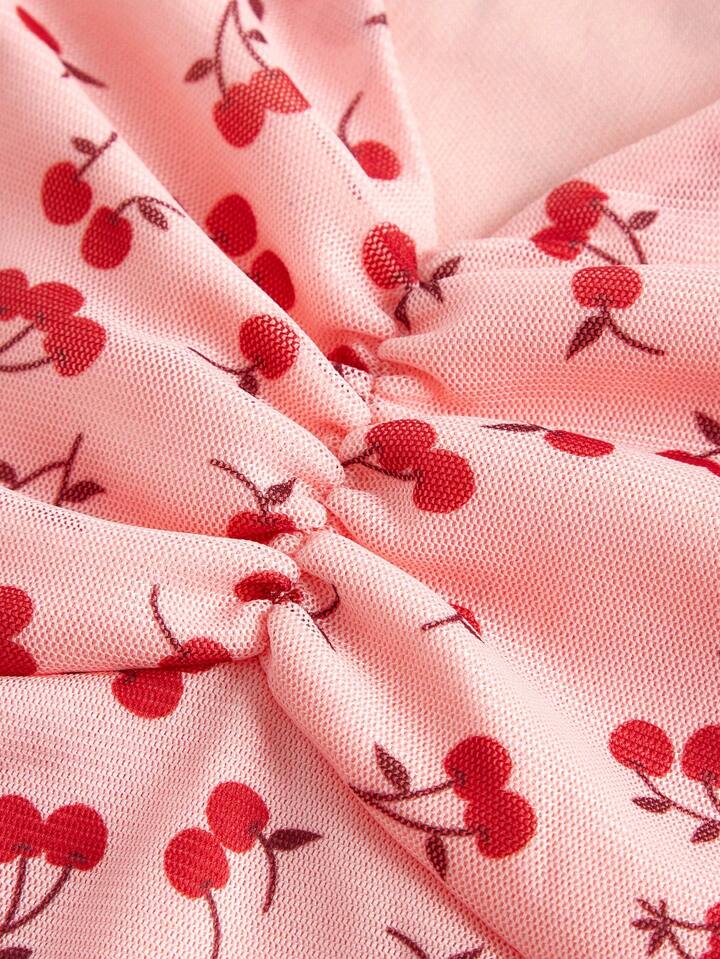 Kawaii Cherry Print Ruched Mesh Cami Top