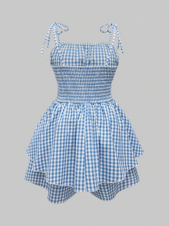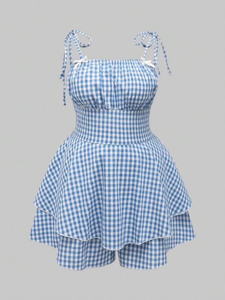 Kawaii Cute And Cozy Seaside Holiday Checkered Jumpsuit Dress With Slim-Fit Cut And A-Line Shape, Plus Size