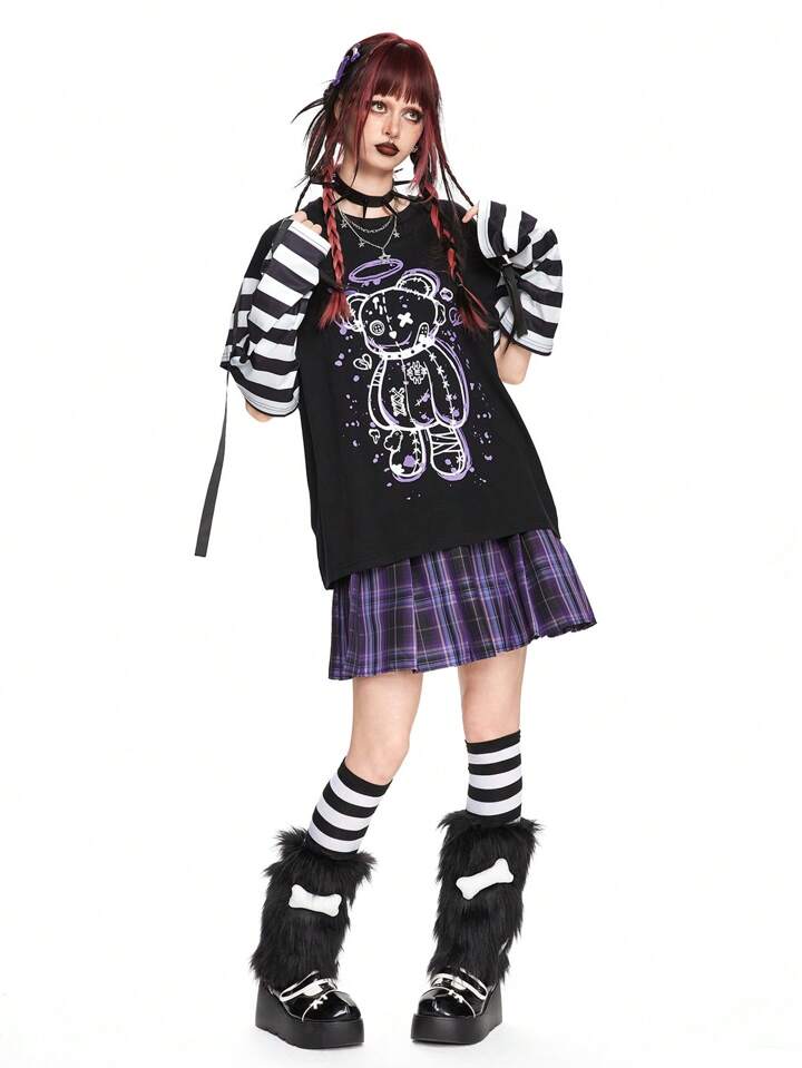 Kawaii Cute Bear Print Long Sleeve T-Shirt For Women