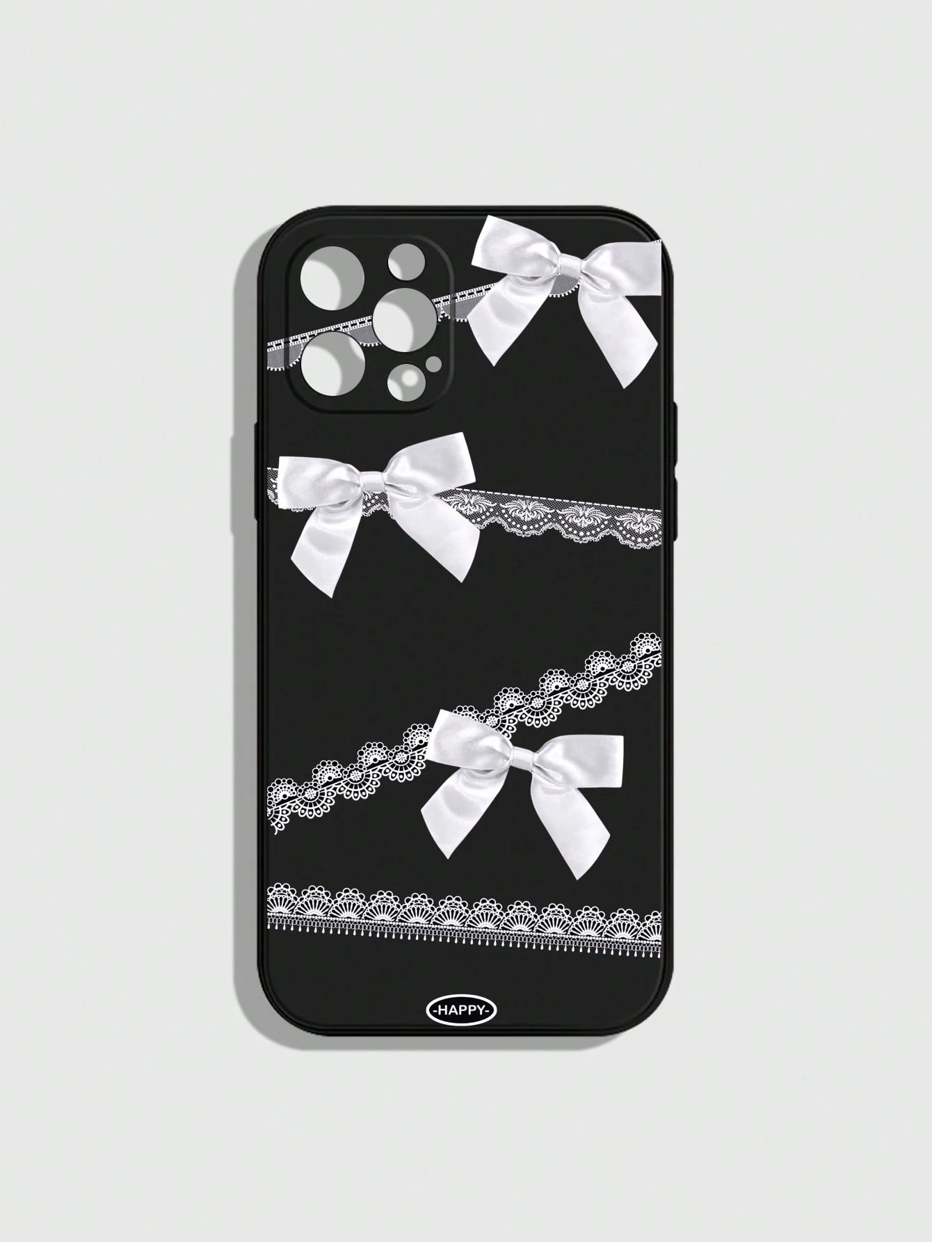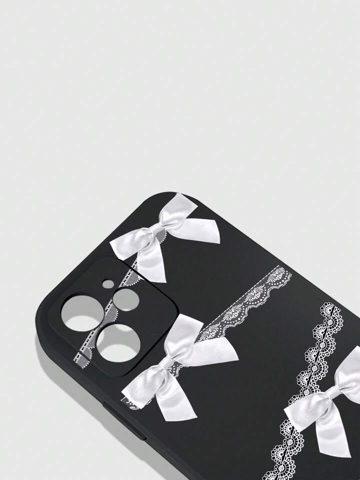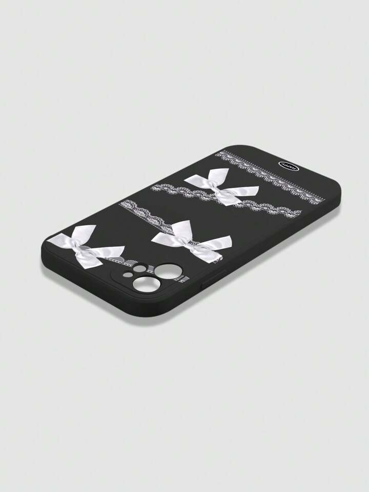 Kawaii Cute & Cool Lace Bow Painting Black Silicone Phone Case Compatible With IPhone 13 Pro Max, XR, 7/8 Plus, 12, Suitable For Men & Women