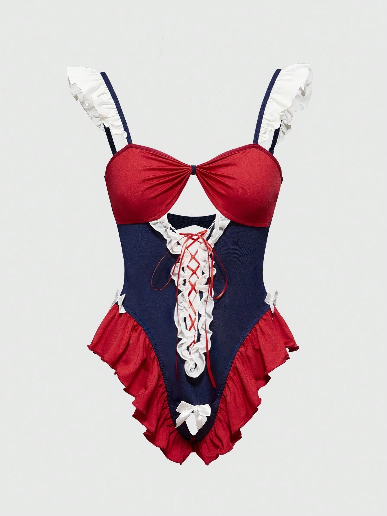 Kawaii Cute Lolita Uniform Dopamine Girl Hollow Lace-Up Sensual Bodysuit