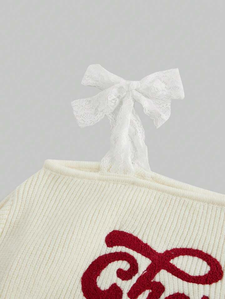Kawaii Cute Mori Style Holiday Cherry Embroidered Lace Tie Bow Lantern Sleeve Fitted Plus Size Cardigan, Apricot