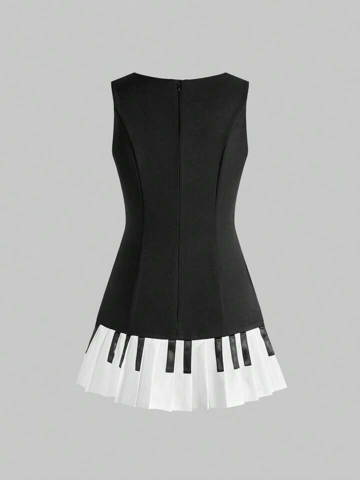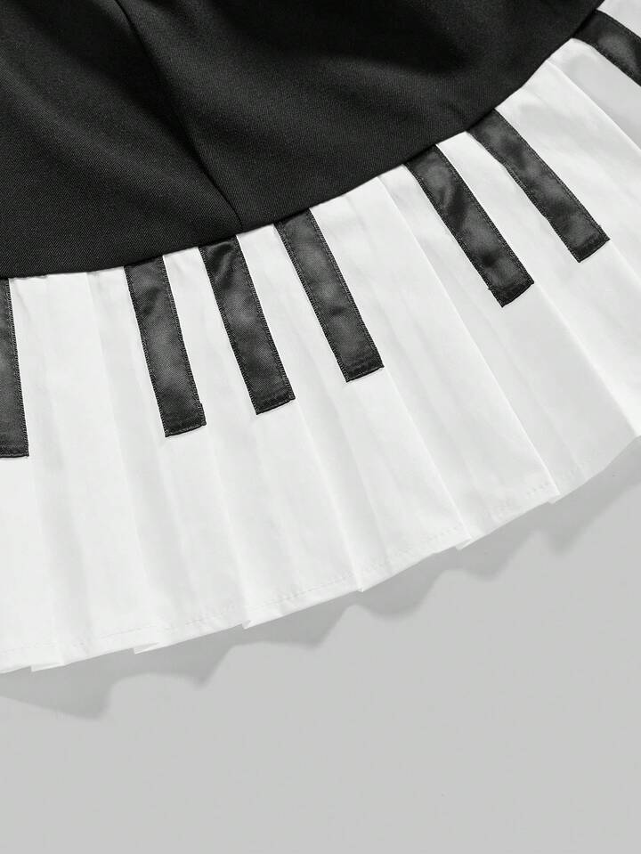 Kawaii Cute Piano Keyboard Print Fitted A-Line Mini Dress, Collegiate Style
