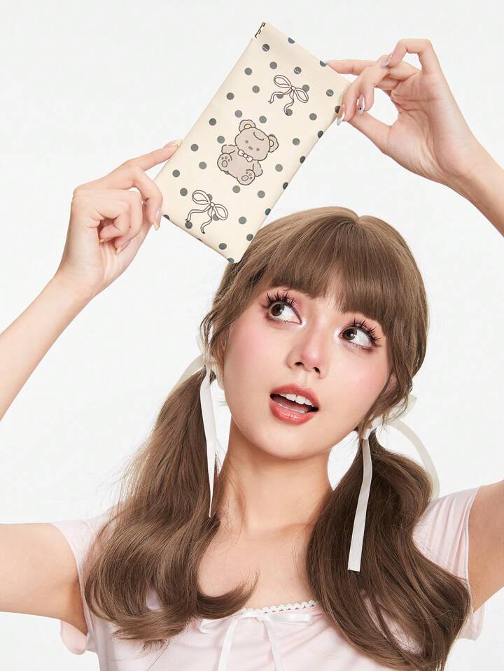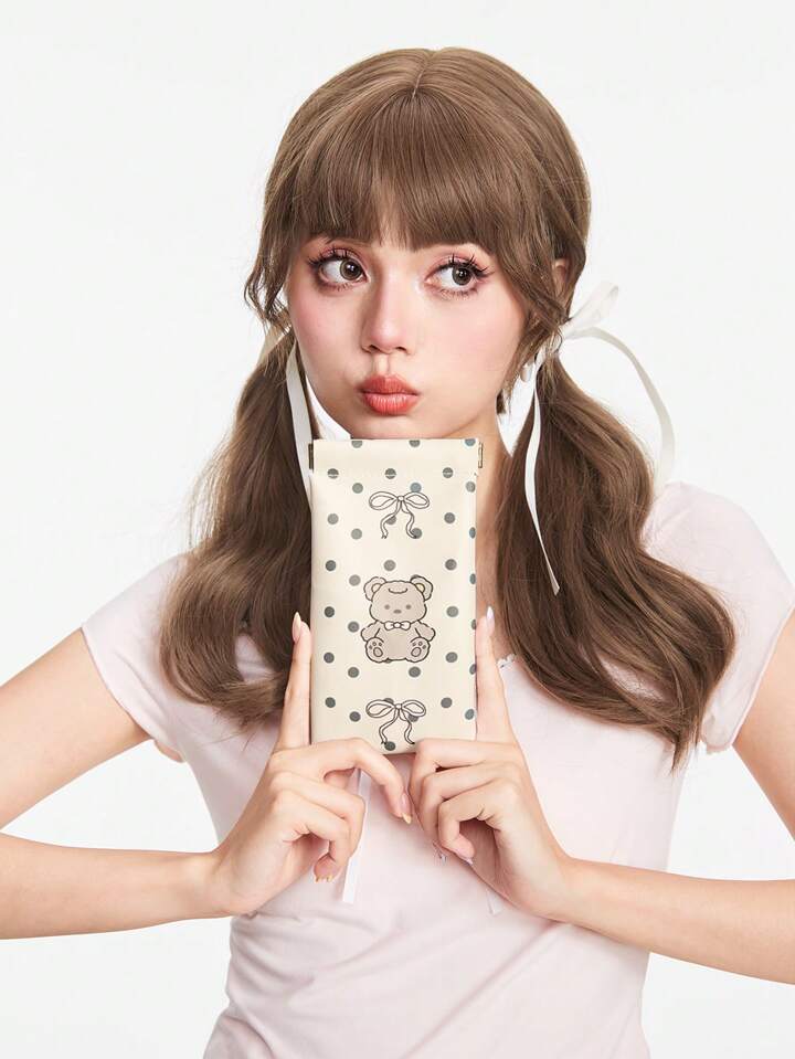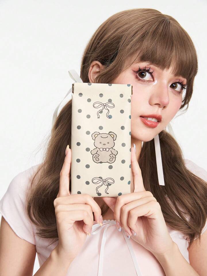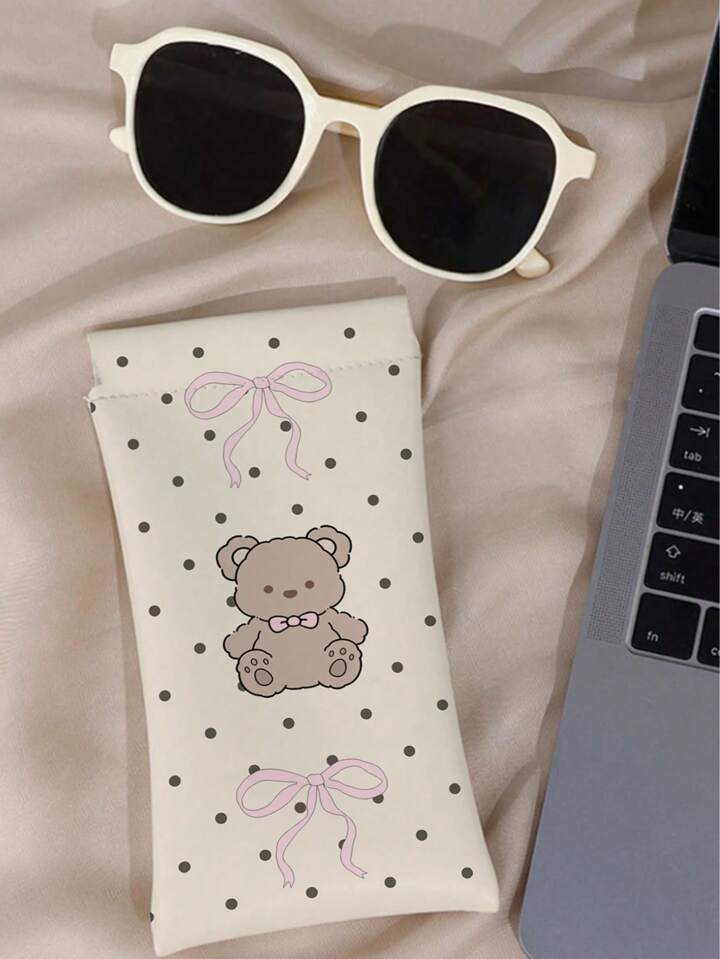 Kawaii Cute Polka Dot Bow Teddy Bear Cartoon Eyeglass Case, Crush Resistant, Convenient And Simple Protective Sleeve, Suitable For Sunglasses, Reading Glasses, Etc.