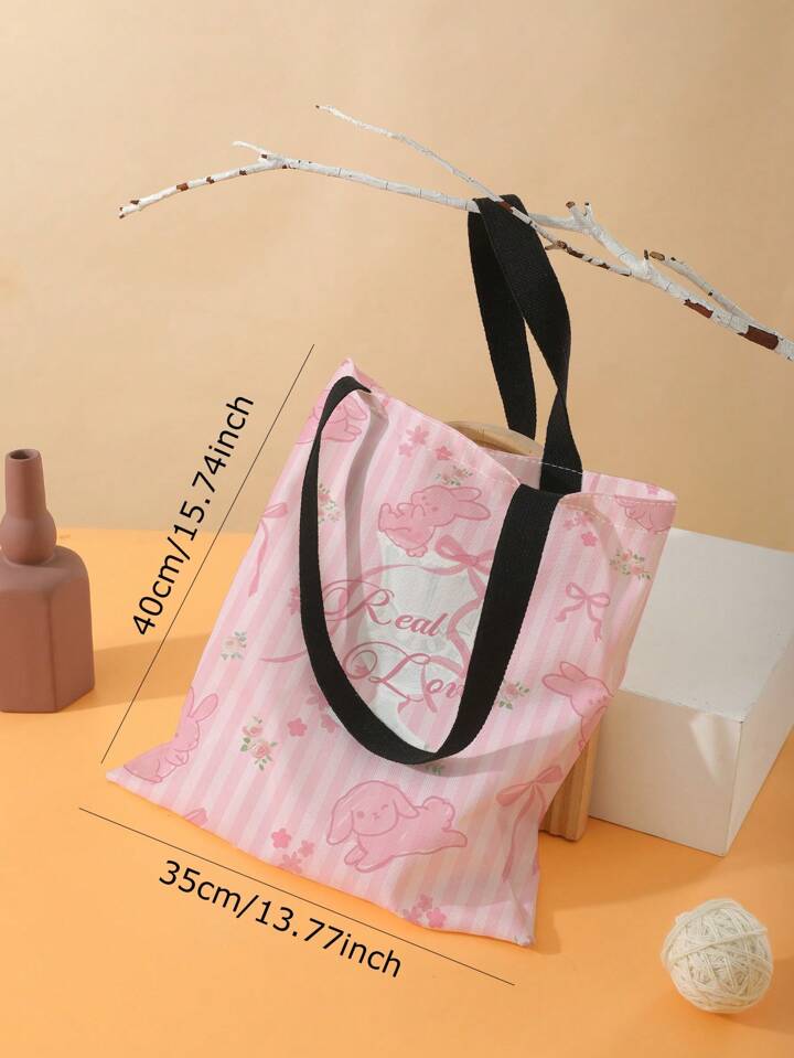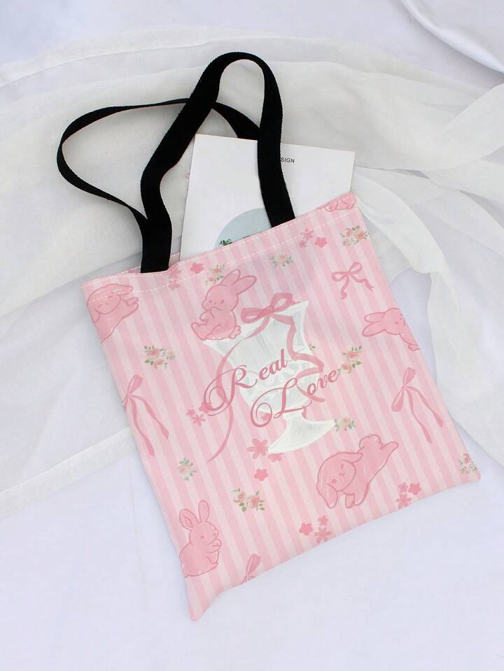 Kawaii Cute Rabbit & Bow Reversible Shoulder Canvas Tote Bag