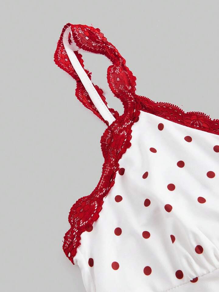Kawaii Cute Red Polka Dot Print Tight-Fitting Lace Hem Knitted Stretch Women'S Tank Top