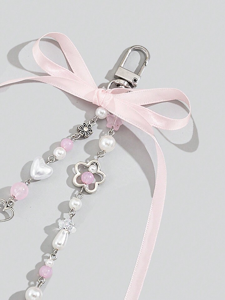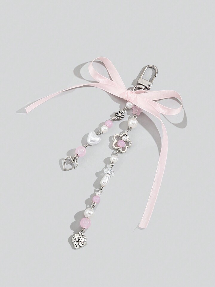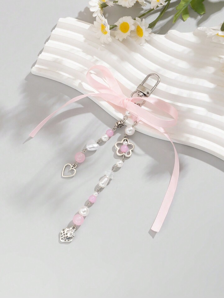 Kawaii Cute Strawberry/Heart/Bowknot Faux Pearl Tassel Keychain, Suitable For Bag, Phone, Best Friend, Holiday Gift
