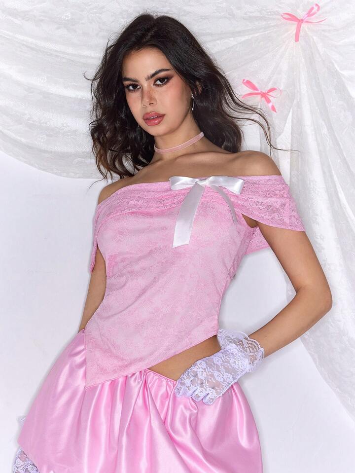Kawaii Cute Sweet Lace Off Shoulder Women T-Shirt