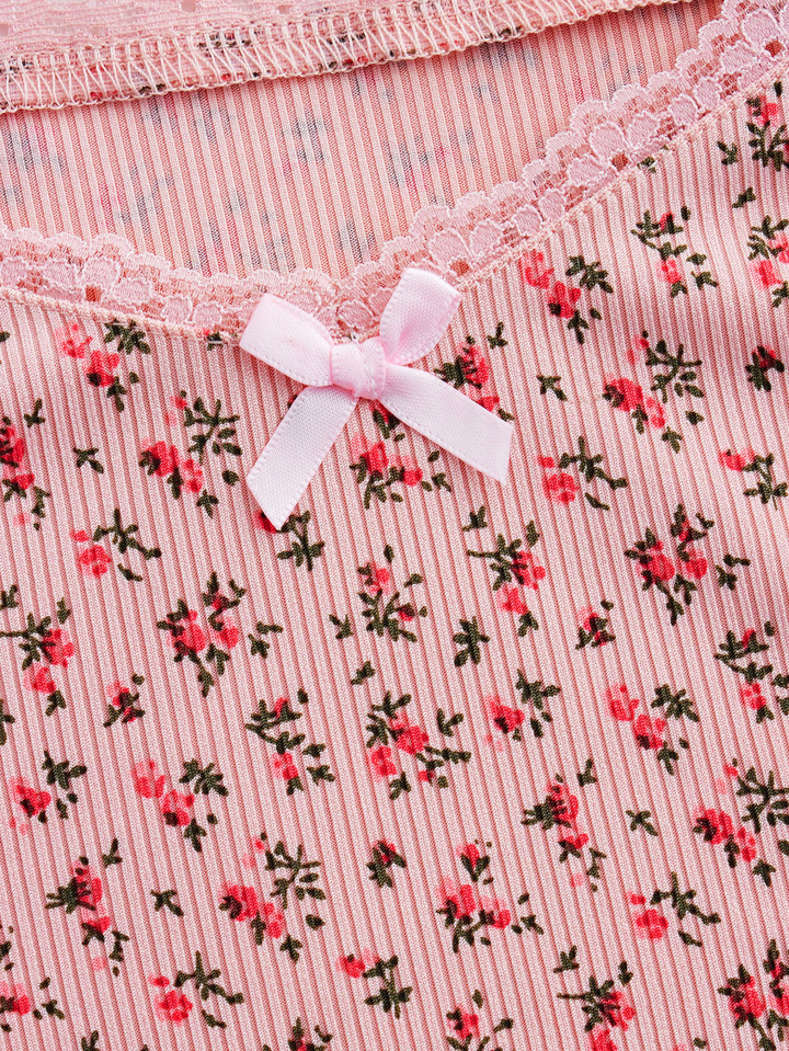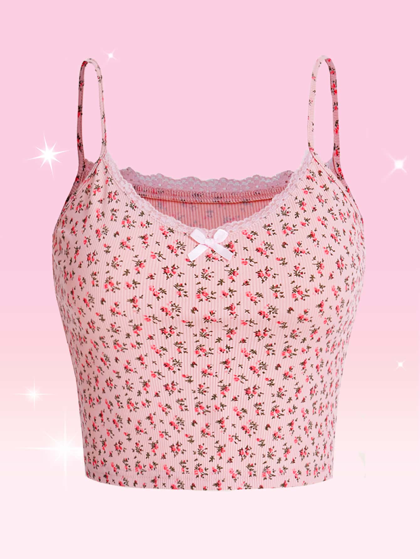 Kawaii Ditsy Floral Lace Trim Cami Top