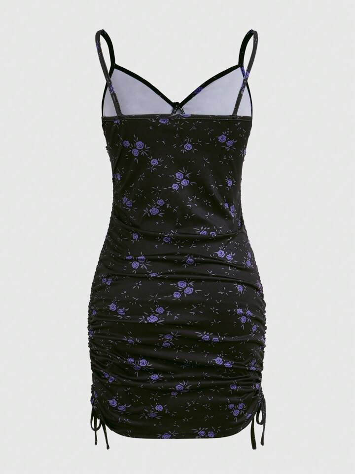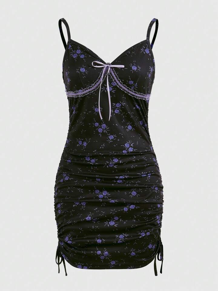 Kawaii Ditsy Floral Print Drawstring Side Cami Dress