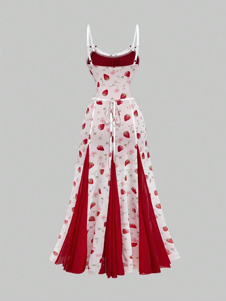 Kawaii Elegant Christmas Strawberry All-Over Print Fitted Flare Dress