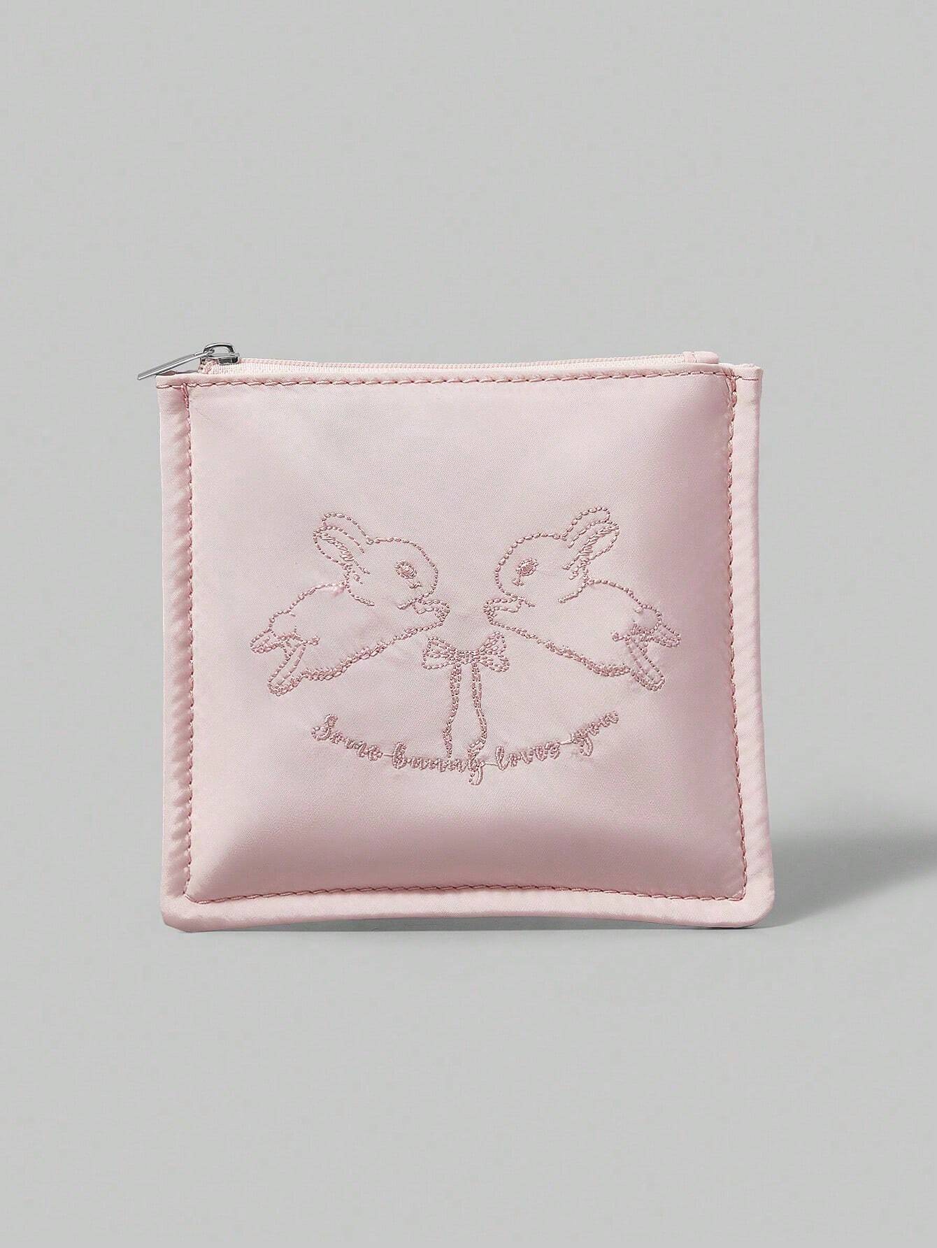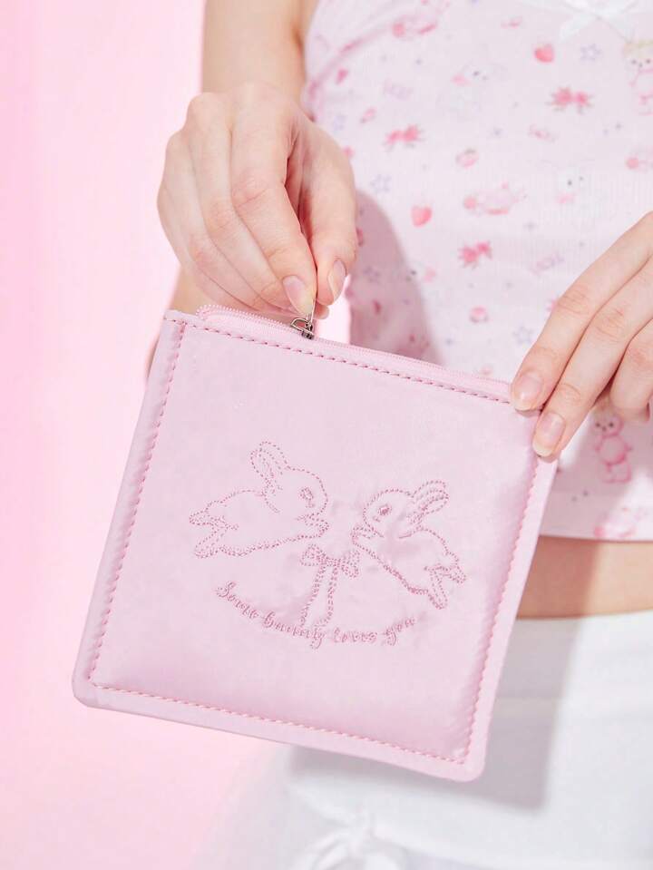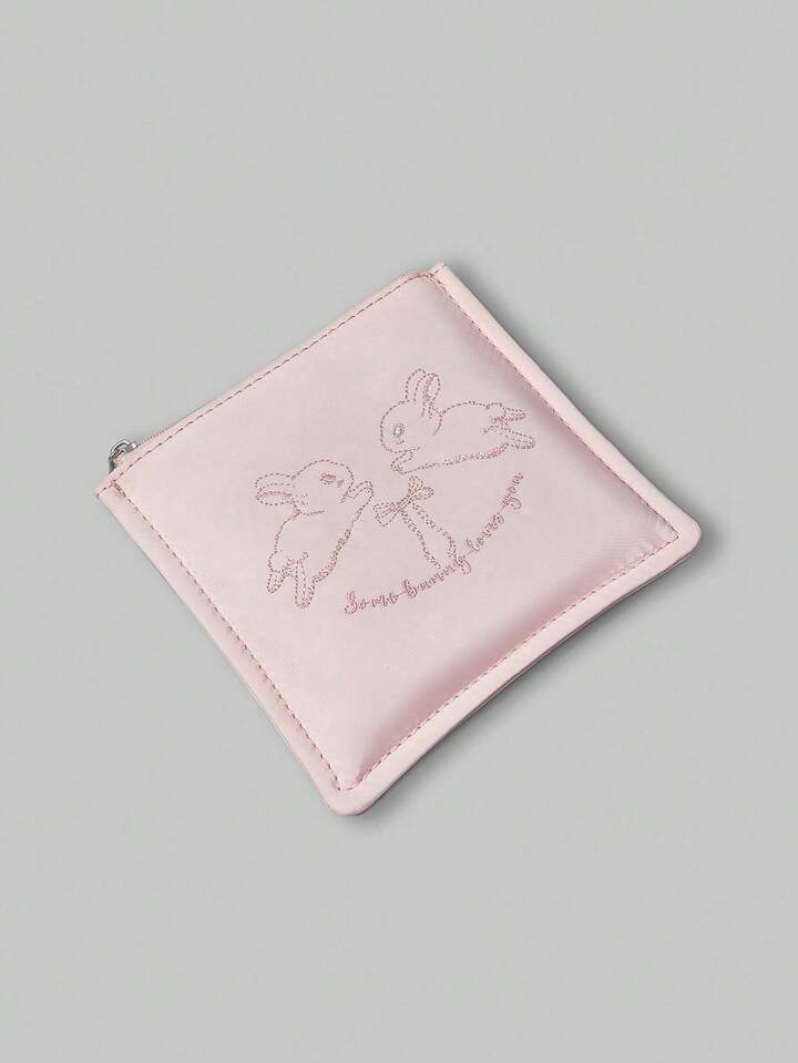 Kawaii Embroidered Rabbit Pattern Sanitary Napkin/Pad Holder Storage Bag, Multi-Purpose Pouch For Sanitary Pads, Lipstick, Cosmetics, Keys
