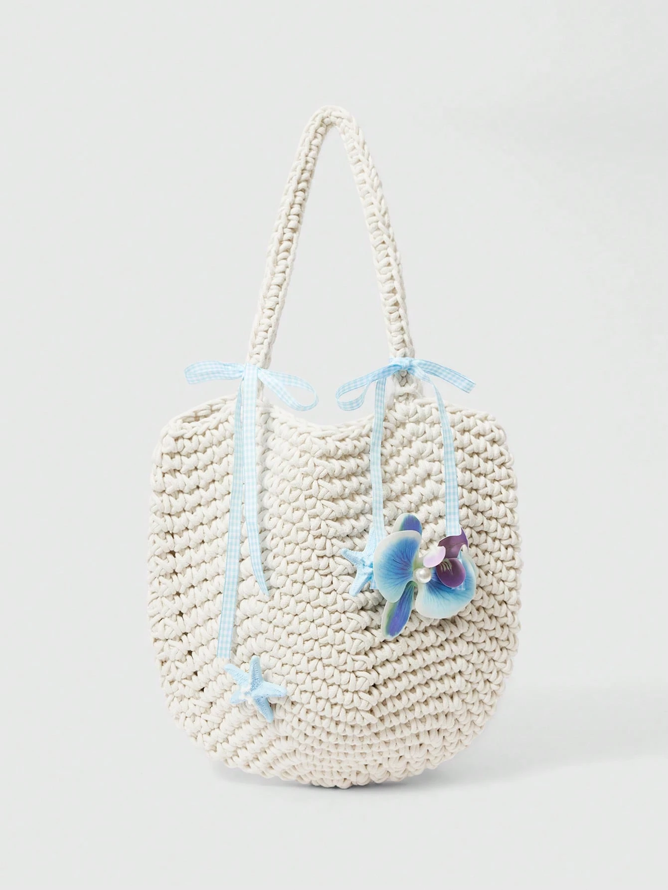 Kawaii Fashion Solid Color Vacation Style DIY Flower Starfish Hairpin Woven Shoulder Women's Bag