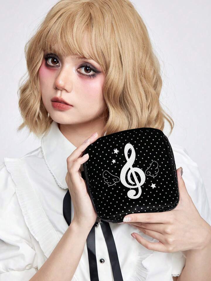 Kawaii Fashionable Cartoon Vintage Girl Thicker And Portable Cosmetic Bag With Large Capacity, Small Square Bag 442464