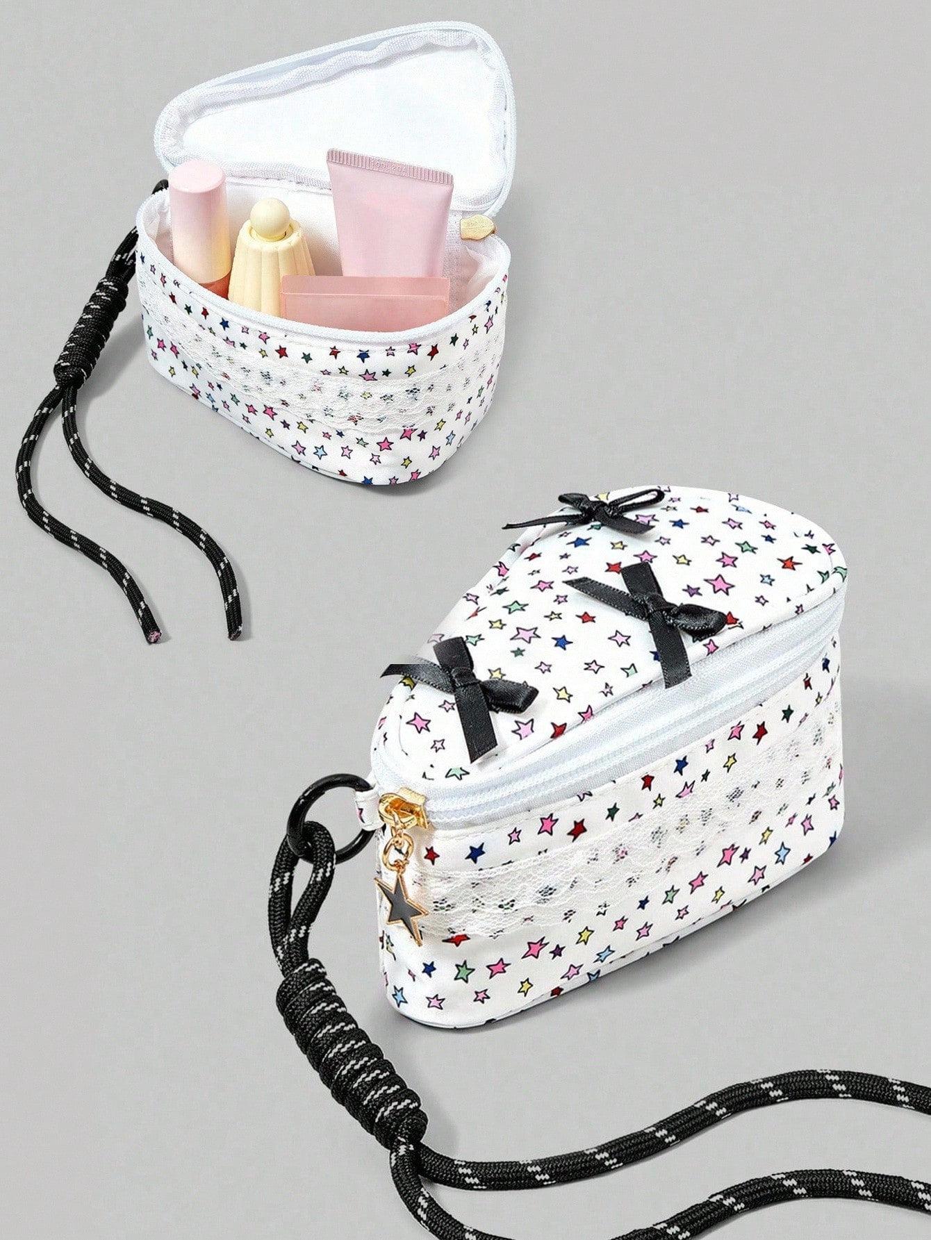Kawaii Fashionable Pearl Colorful Star Pattern Makeup Pouch, Cute & Portable Mini Cosmetic Bag
