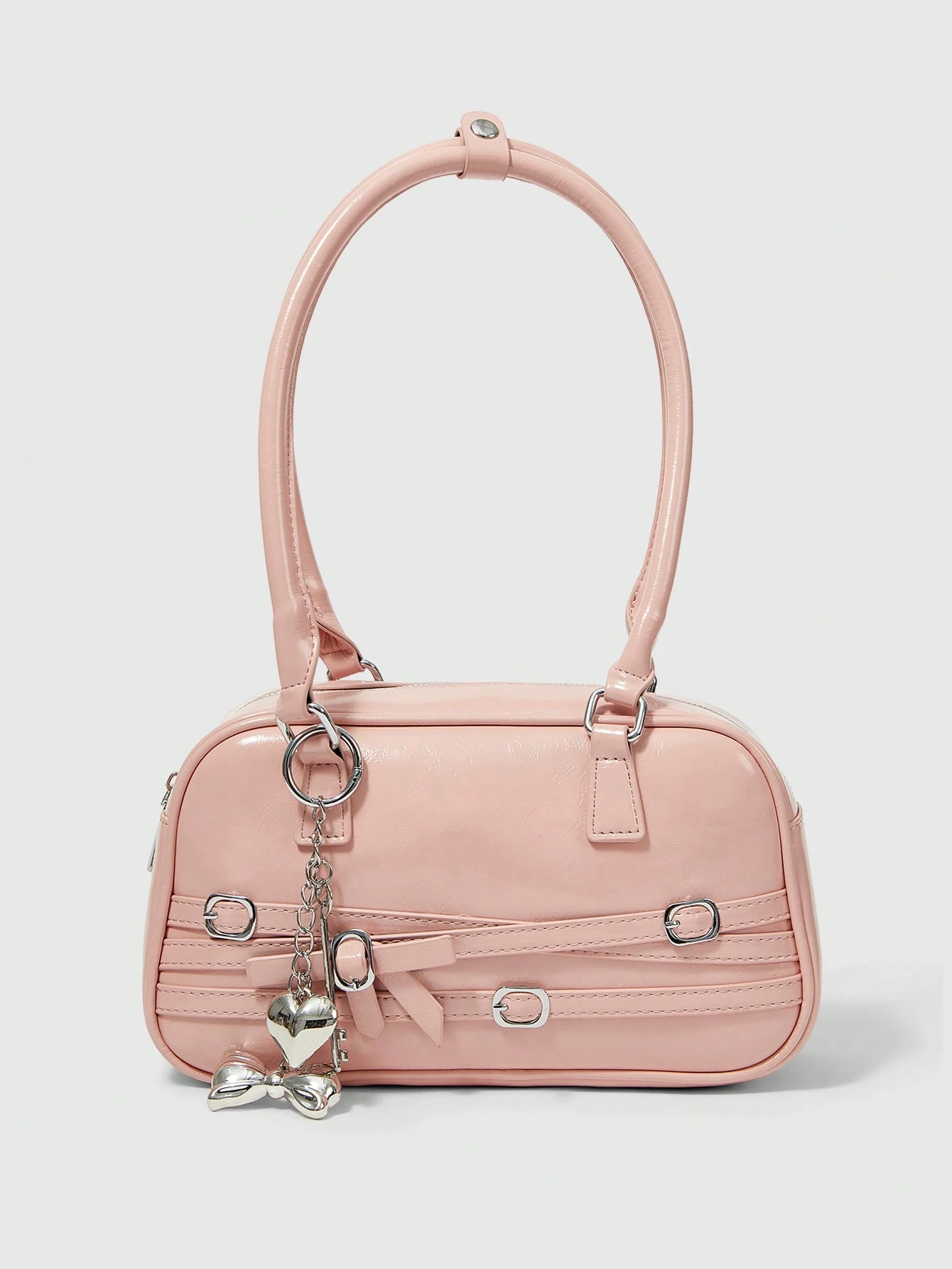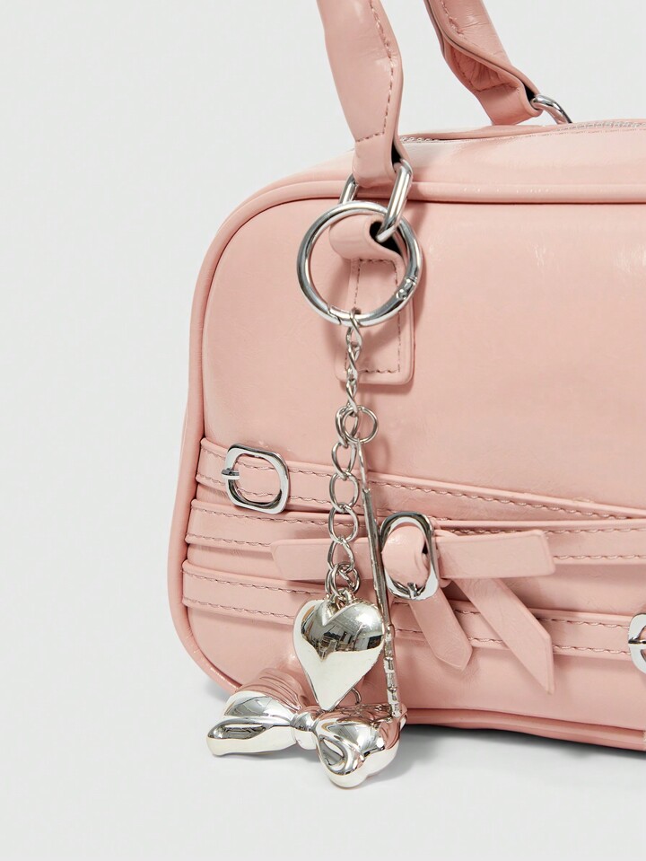 Kawaii Fashionable Solid Pink Bow Decor Commuting Driver Shoulder Square Bag