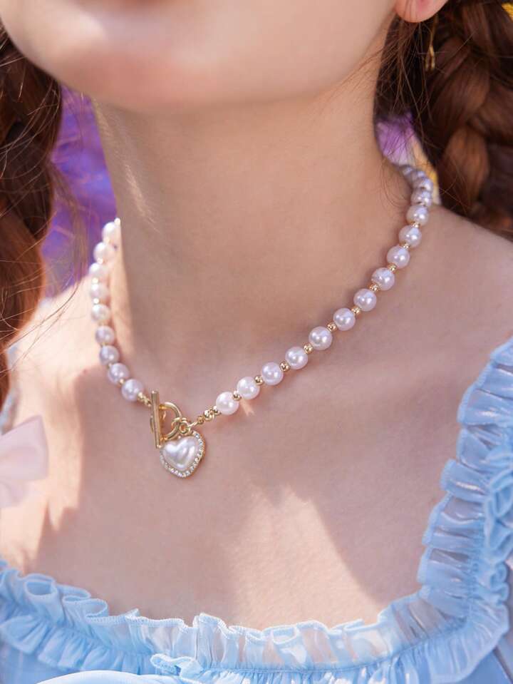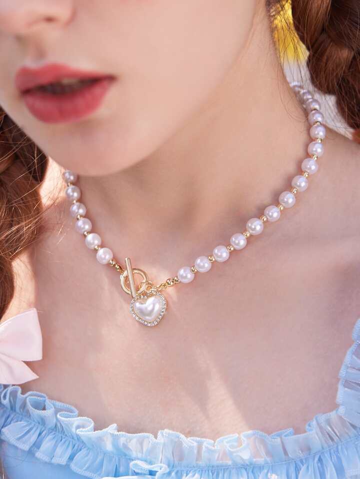 Kawaii Faux Pearl Decor Heart Charm OT Buckle Necklace