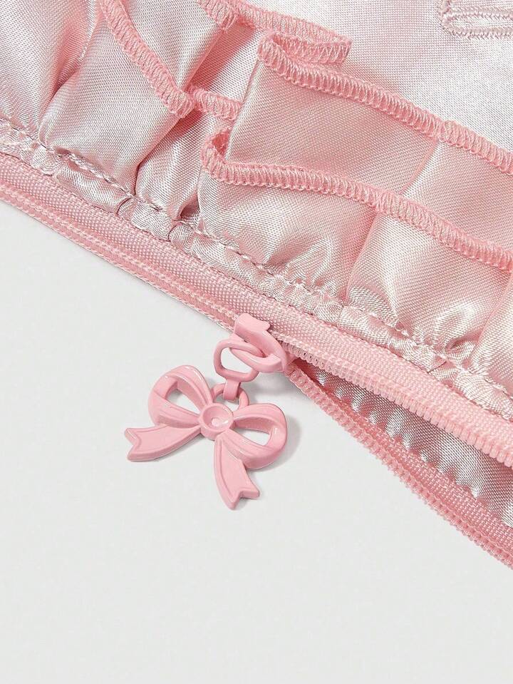 Kawaii Floral Pattern: 84225 Embroidered Bow Trim Small Bucket Tissue Box Makeup Bag Travel Sanitary Pad Storage Pouch Gift Coin Purse