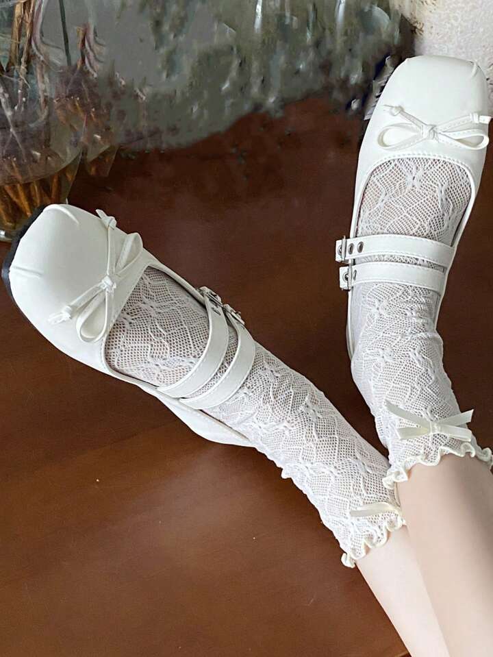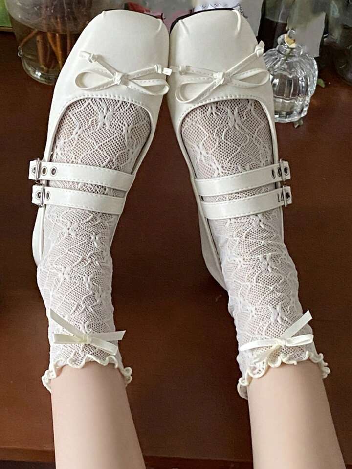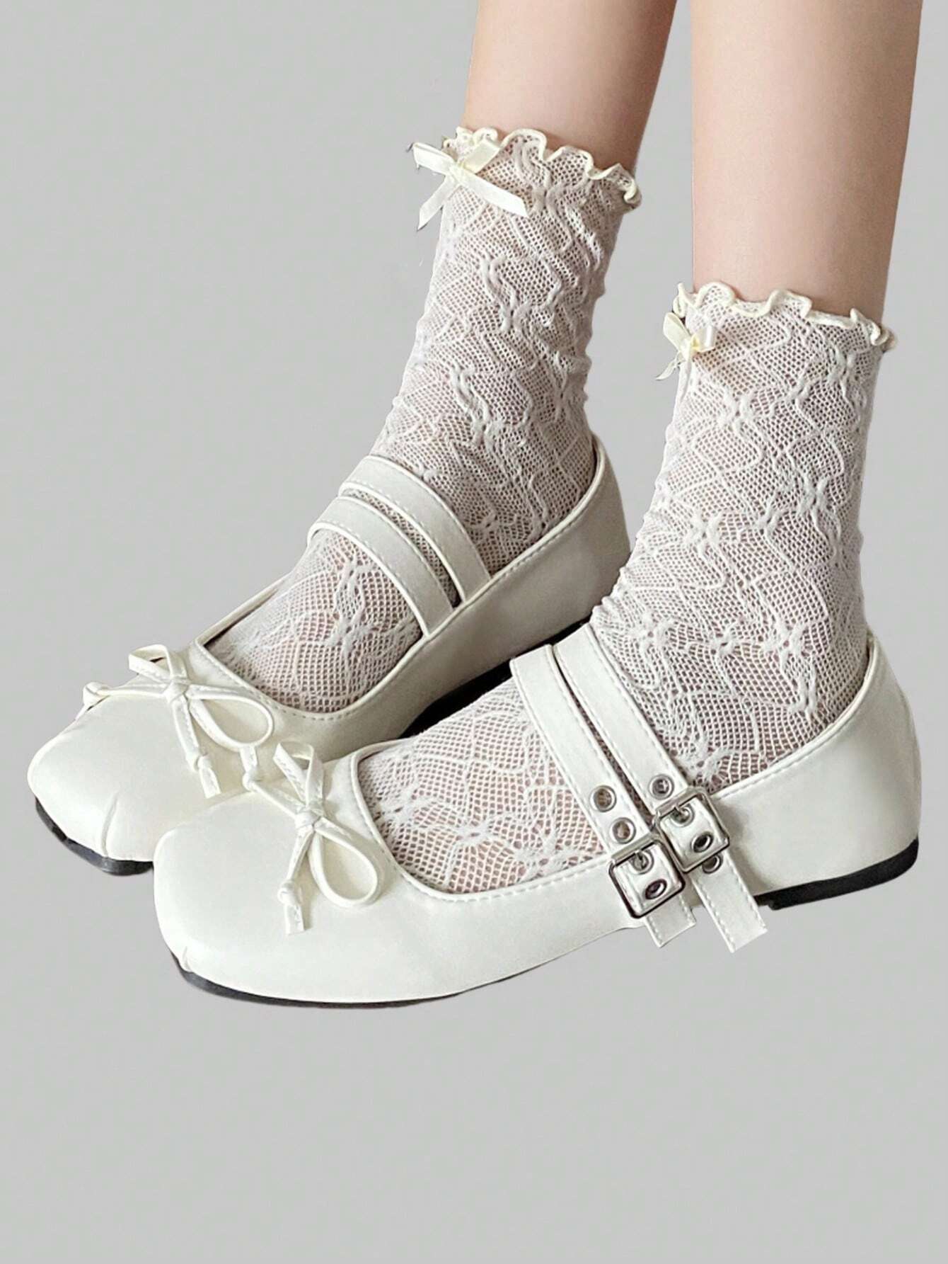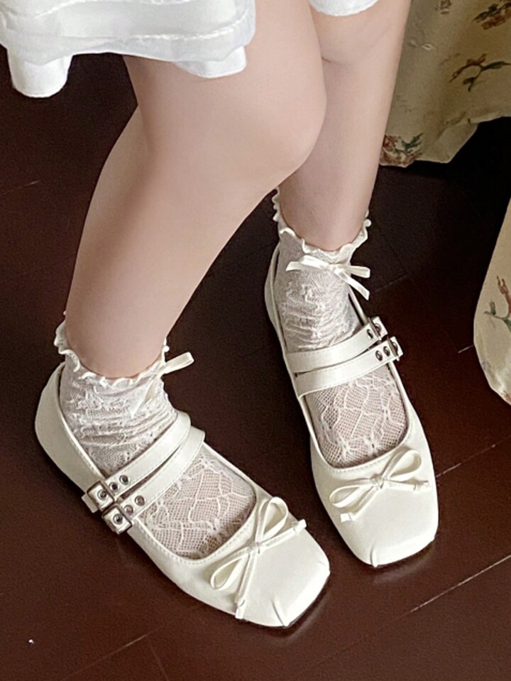 Kawaii French Retro Bowknot Ballet Shoes, Double Row Buckle Strap, Comfortable Mary Jane Student Flat Shoes