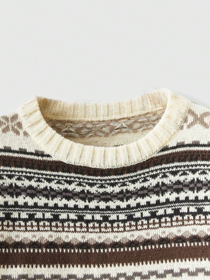 Kawaii Geo Pattern Drop Shoulder Sweater,Long Sleeve Tops