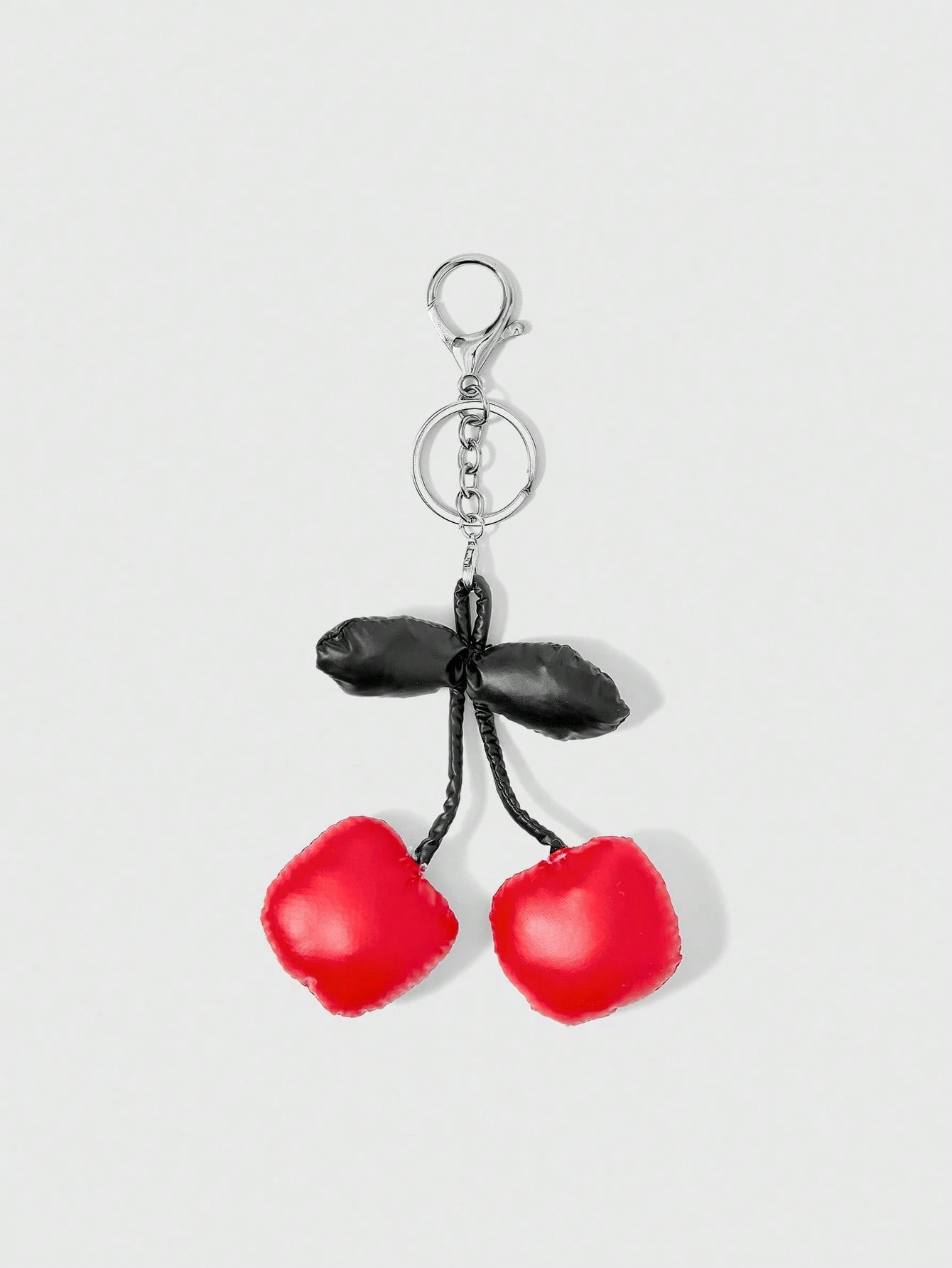 Kawaii Handmade Faux Leather 3D Cherry Bow Keychain/Bag Charm
