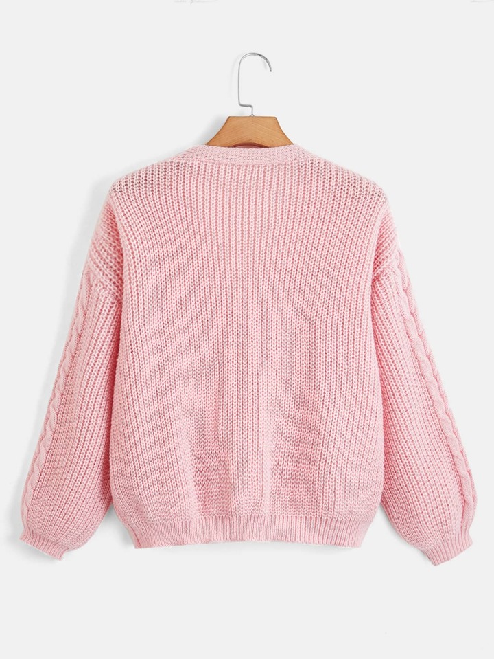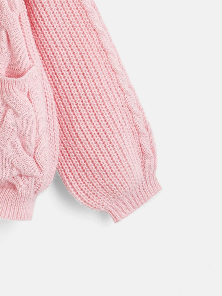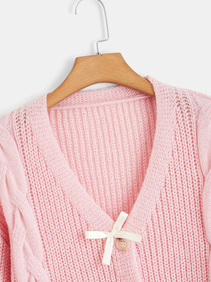 Kawaii Himekaji Cable Knit Bow Front Lantern Sleeve Cardigan, School
