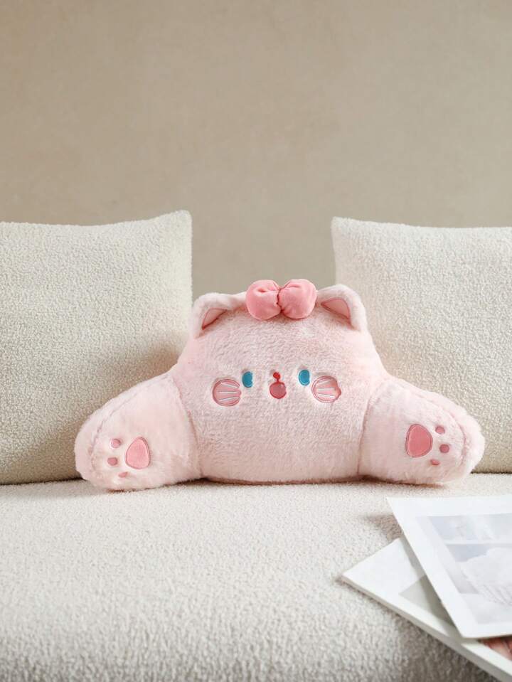Kawaii Imitation Rabbit Fur Embroidered Bowknot Cat Shaped Waist Support Cushion
