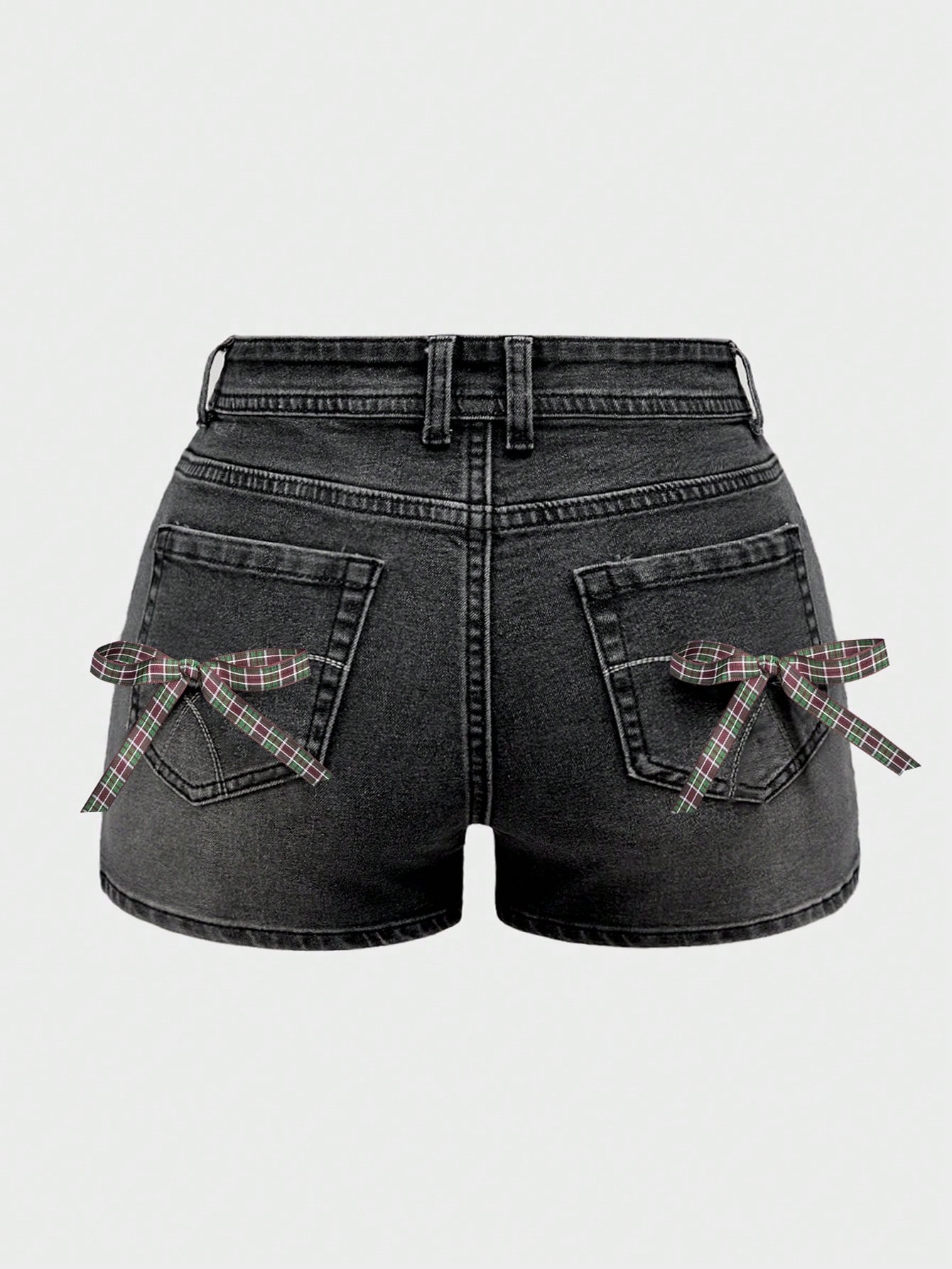 Kawaii Retro Plaid Bowknot Decor Women Skinny Denim Shorts