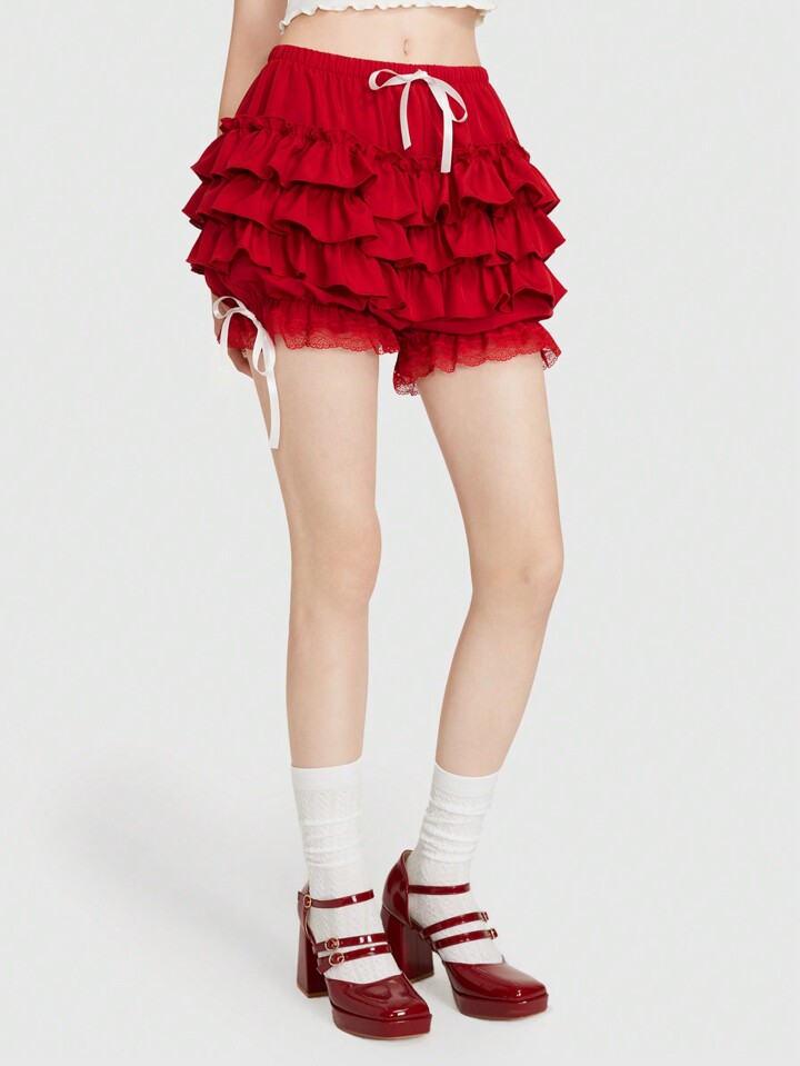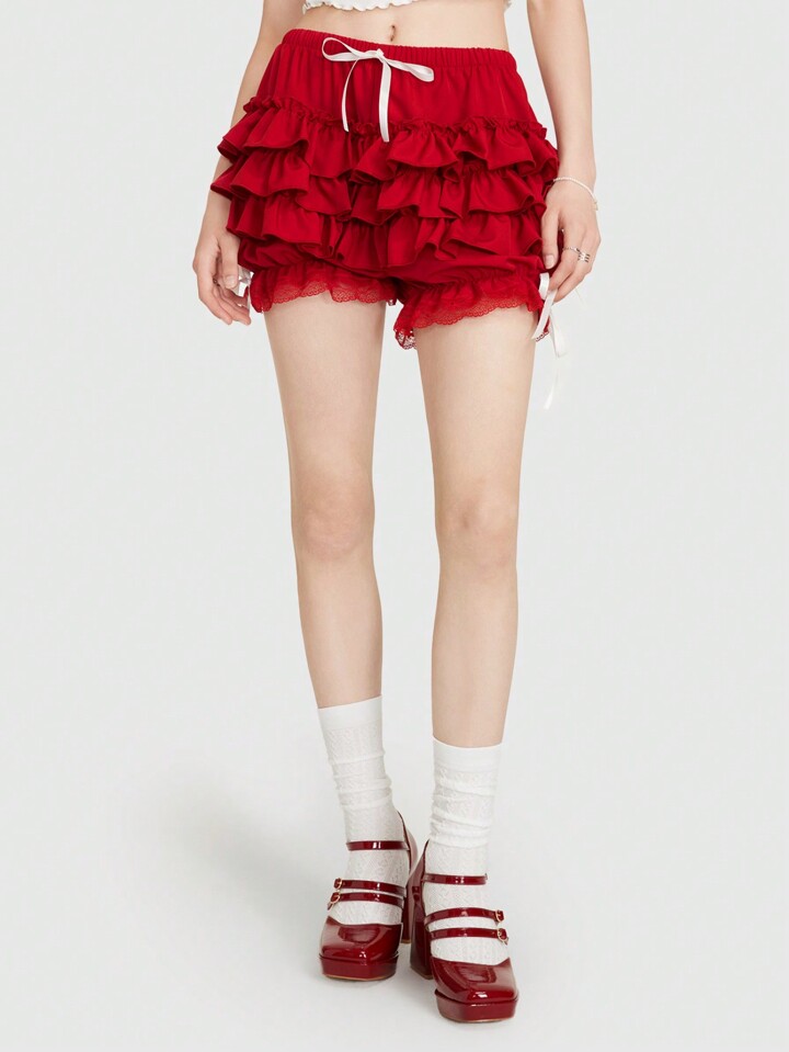 Kawaii Knot Detail Tiered Layer Shorts