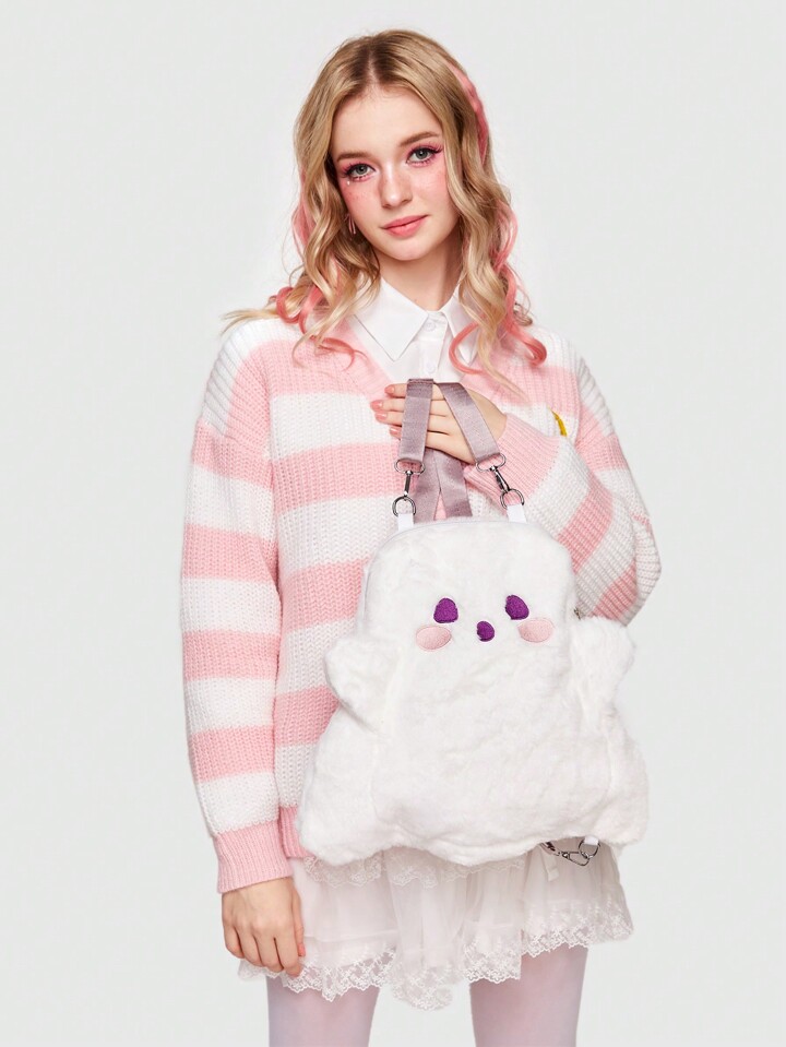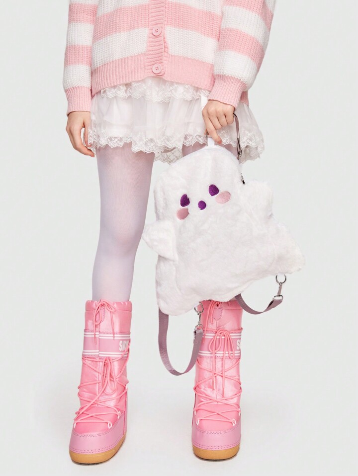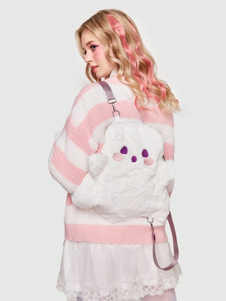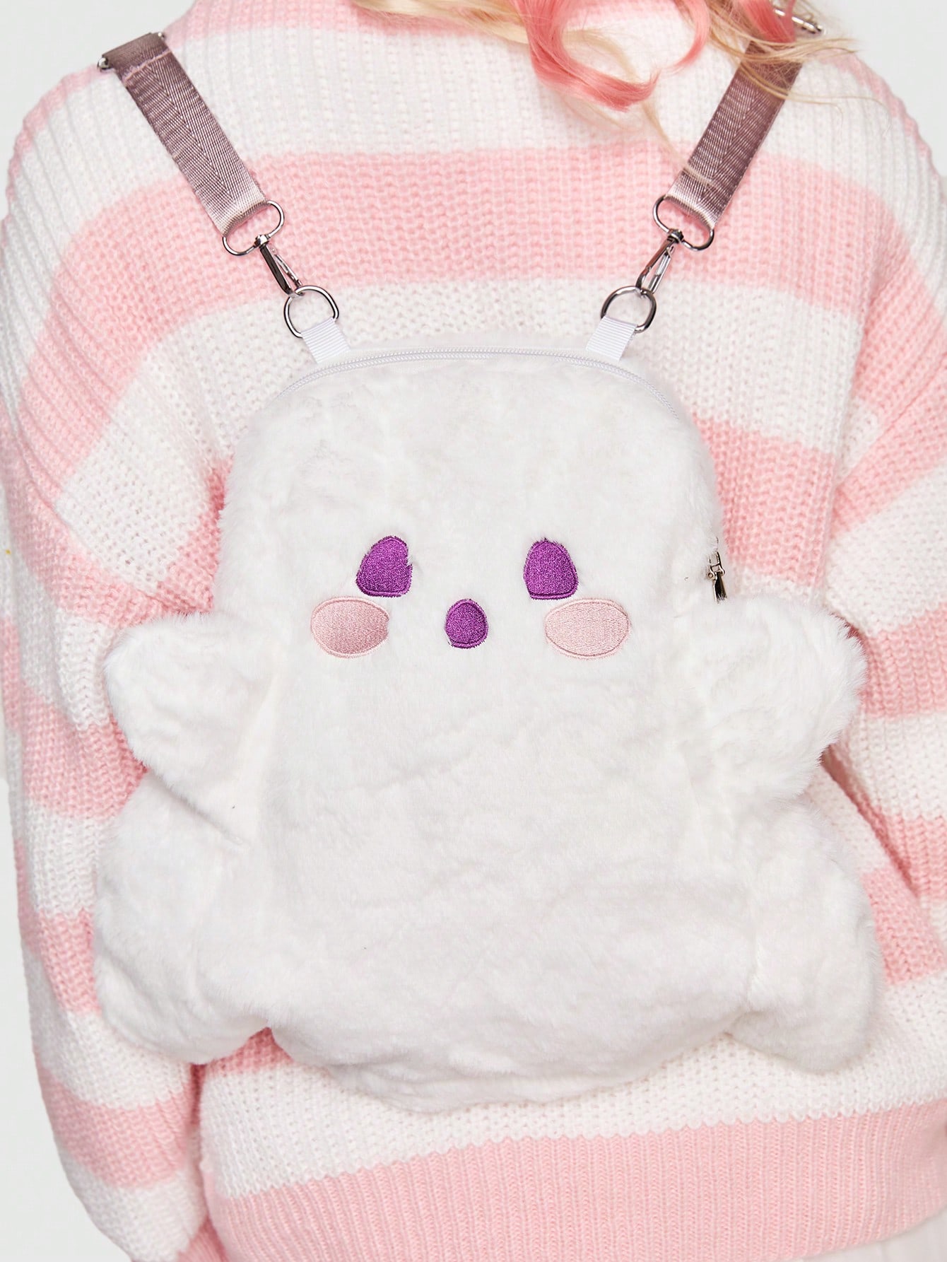 Kawaii Large Fluffy Backpack Cute Cartoon Ghost Design For Women For Daily Work