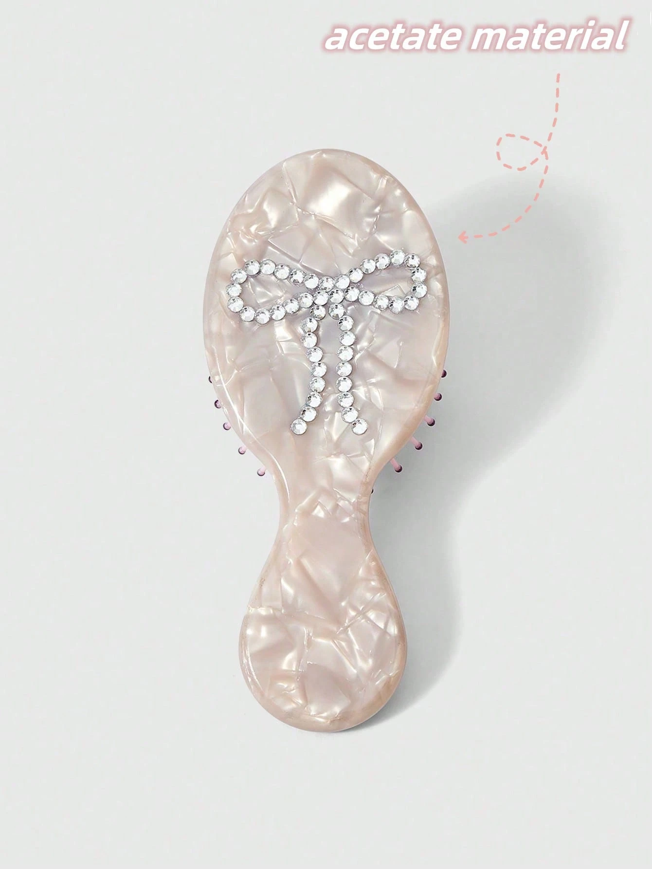 Kawaii Mini Handheld Marble Texture Air Cushion Hair Brush, Scalp Massage, Rhinestone Bow Decor