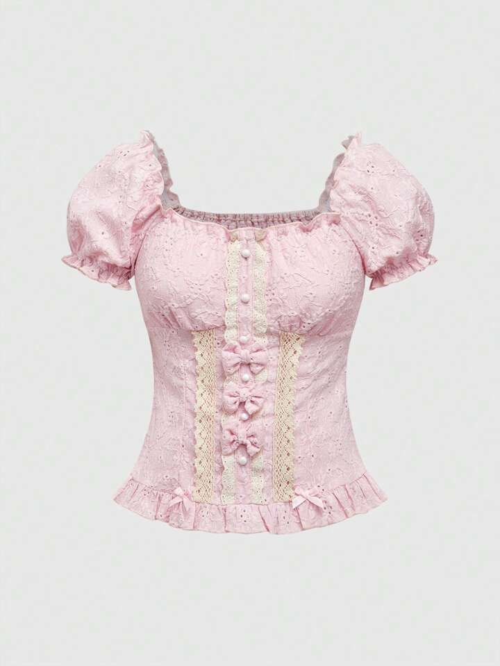 Kawaii Moe Style Princess Cute Bow Decor Waist Blouse For Women