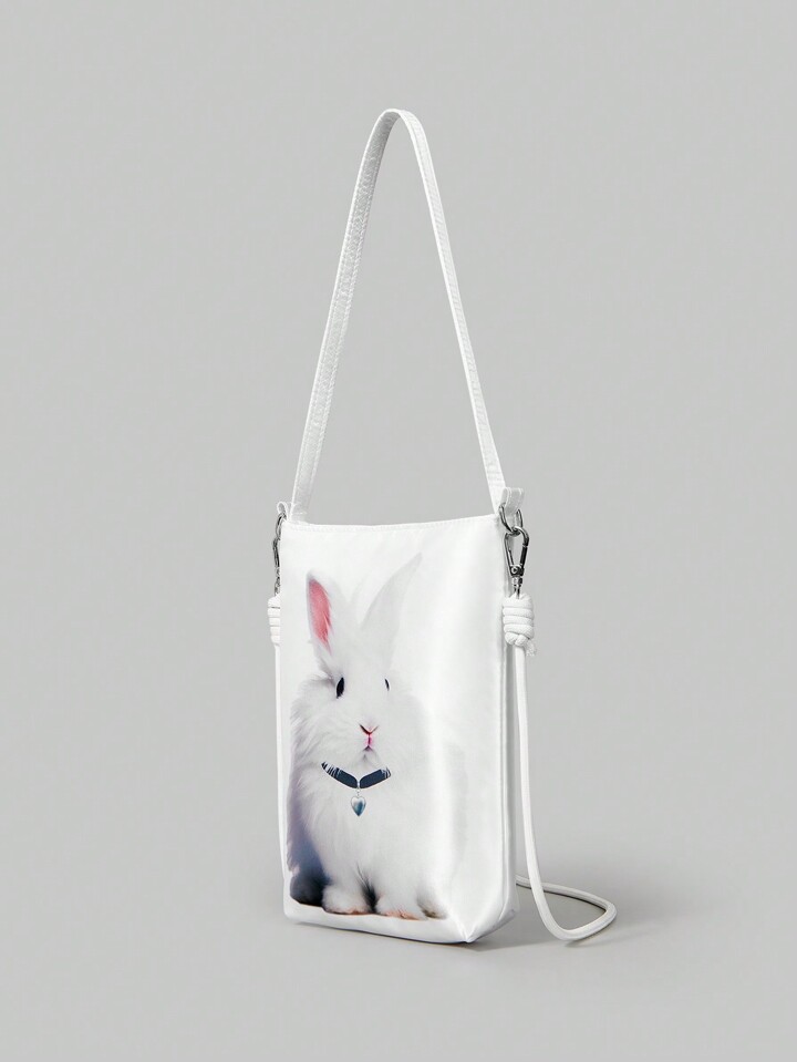 Kawaii Number 561895 Flower Pattern Rabbit Printed Small Shoulder Bag With Handles And Cross-Body Strap