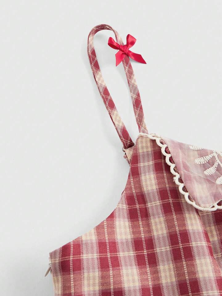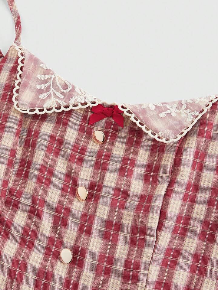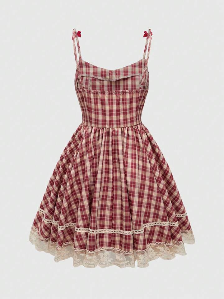 Kawaii Party Holiday Minimalist Sexy Academy Mori Style Checkered Contrast Lace Floral A-Line Princess Women's Dress, School